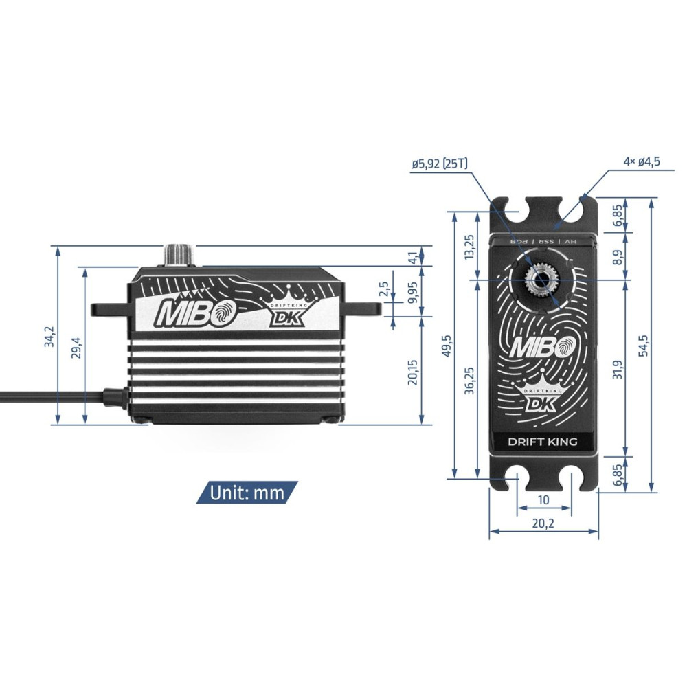 Extra erős, programozható, digitális, alacsony profilú, 66g-os szervó acél fogaskerekekkel és széles feszültségtartományban 4,8-8,4 V, 2xBB, ideális RWD RC drift autókhoz 1:10. 20,0 kg.cm tolóerő, 0,11s/60° sebesség 4,8V-on, 25,0 kg.cm tolóerő, 0,09s/60° sebesség 6,0V-on, 30,0 kg.cm tolóerő, 0,08s/60° sebesség 7,4V-on, 33,0 kg.cm tolóerő, 0,065s/60° sebesség 8,4V-on. Alumínium doboz a tökéletes hűtésért nagy terhelés mellett.