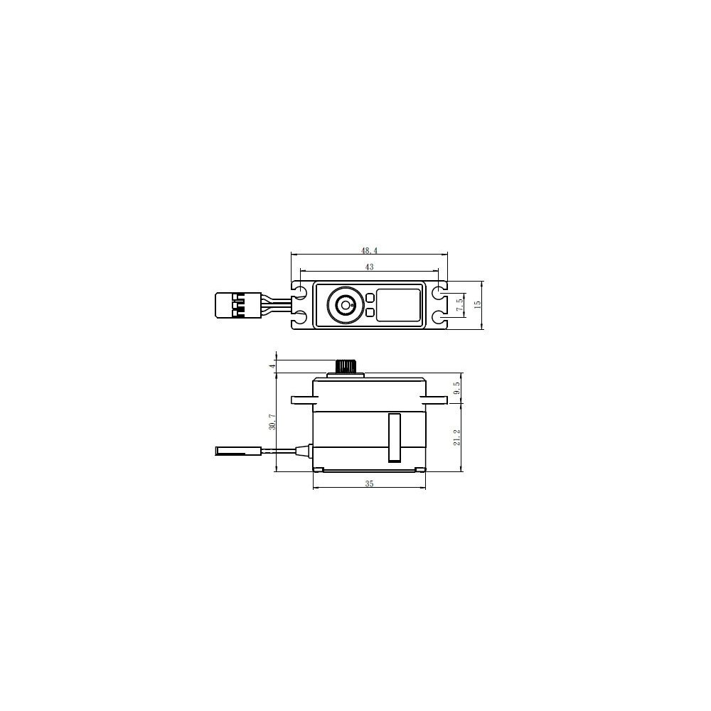 Digitális HiVolt mini szervó Coreless motorral és fém fogaskerékkel, 2x golyóscsapágy, 8.0/12.0kg 6.0/7.4V-on és 0.065/0.055s 6.0/7.4V-on, súly 40.0g, 35.0x15x30.7mm. Működési feszültség 4,8 - 8,4V.