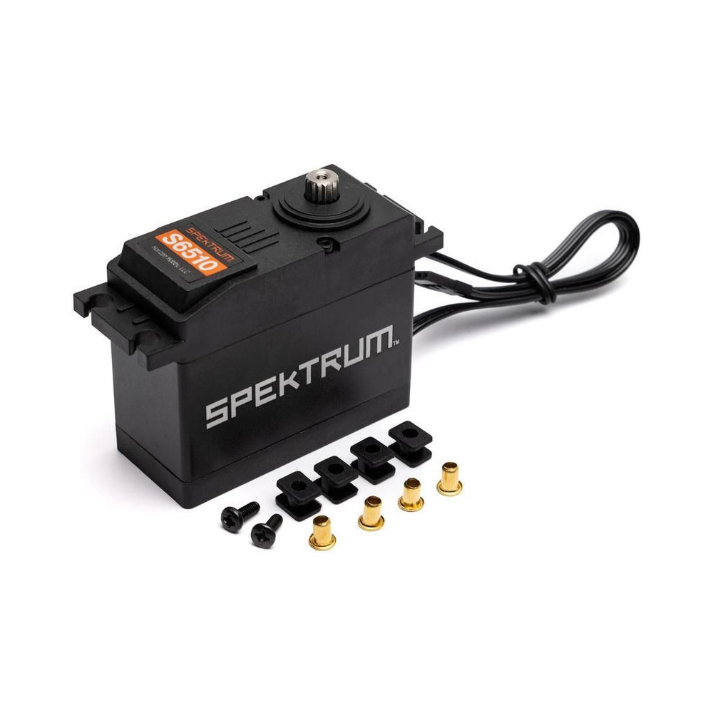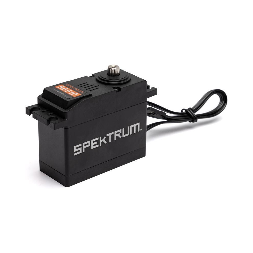 Spektrum S6510 digitális szervó 1:5 méretarányú RC modellautókhoz. Nagy nyomaték. Nyomaték 53kg.cm @ 8,4V, súly 204g, hosszúság 66mm, szélesség 30mm, magasság 58mm, milliszekundum 15T. Tápegység 6,0 - 7,4V (HV), fém fogaskerekek, csapágypár. Kiváló csere S905 vagy S906 szervókhoz, mint például ARRMA 1/5 Kraton 4WD BLX Monster Truck, Losi 1/6 Super Baja Rey, Axial 1/6 SCX6 lánctalpasokhoz és még sok máshoz.