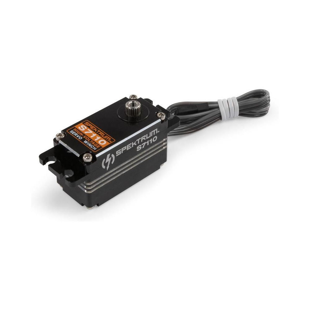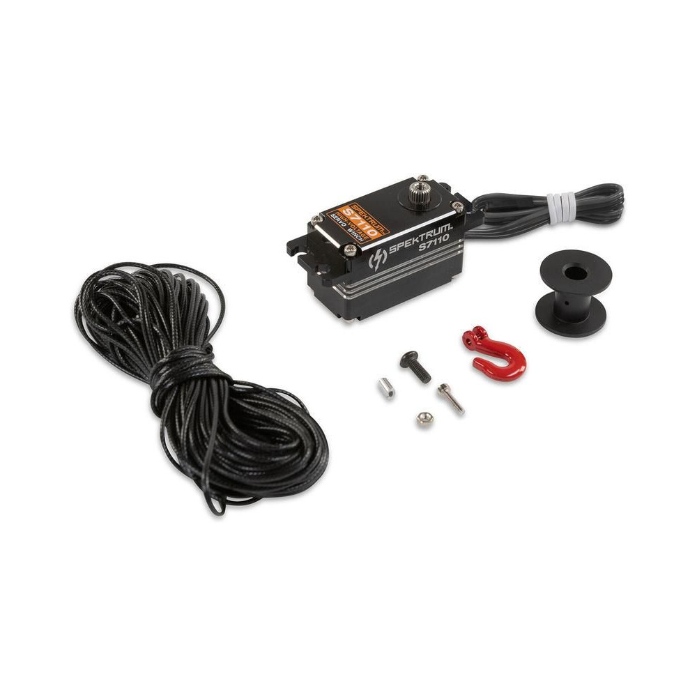 Spectrum szervo csörlő 1:10 méretarányú Rock Crawler RC modellekhez. Az orsóval ellátott szervó kimeneti tengelye milliszekundumos, 360°-kal folyamatosan forgatható, az orsó, a zsinór és a horog a tartozék. HV 6V - 8,4V-os tápegység, vízálló, kefe nélküli motor, fém fogaskerekek, nyomaték akár 13kg.cm @ 8,4V.