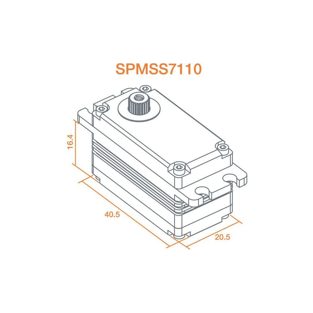 - 9,5 kg.cm @ 6V, 11,5 kg.cm @ 7.4V, a 13 kg.cm @ 8.4V