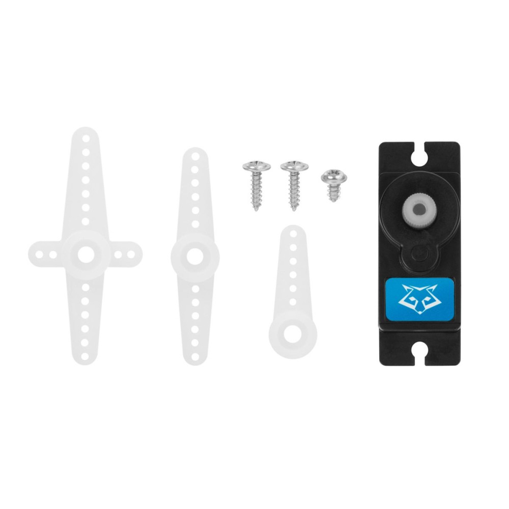 Digitális pico-servo 9g műanyag fogaskerekekkel kis elektromos repülőkhöz és vitorlázórepülőkhöz. Tolóerő 1,3 kg.cm, sebesség 0,12 s/60° 4,8 V-on, méretek 23x12x27,3 mm, tápellátás 4,8-6 V.