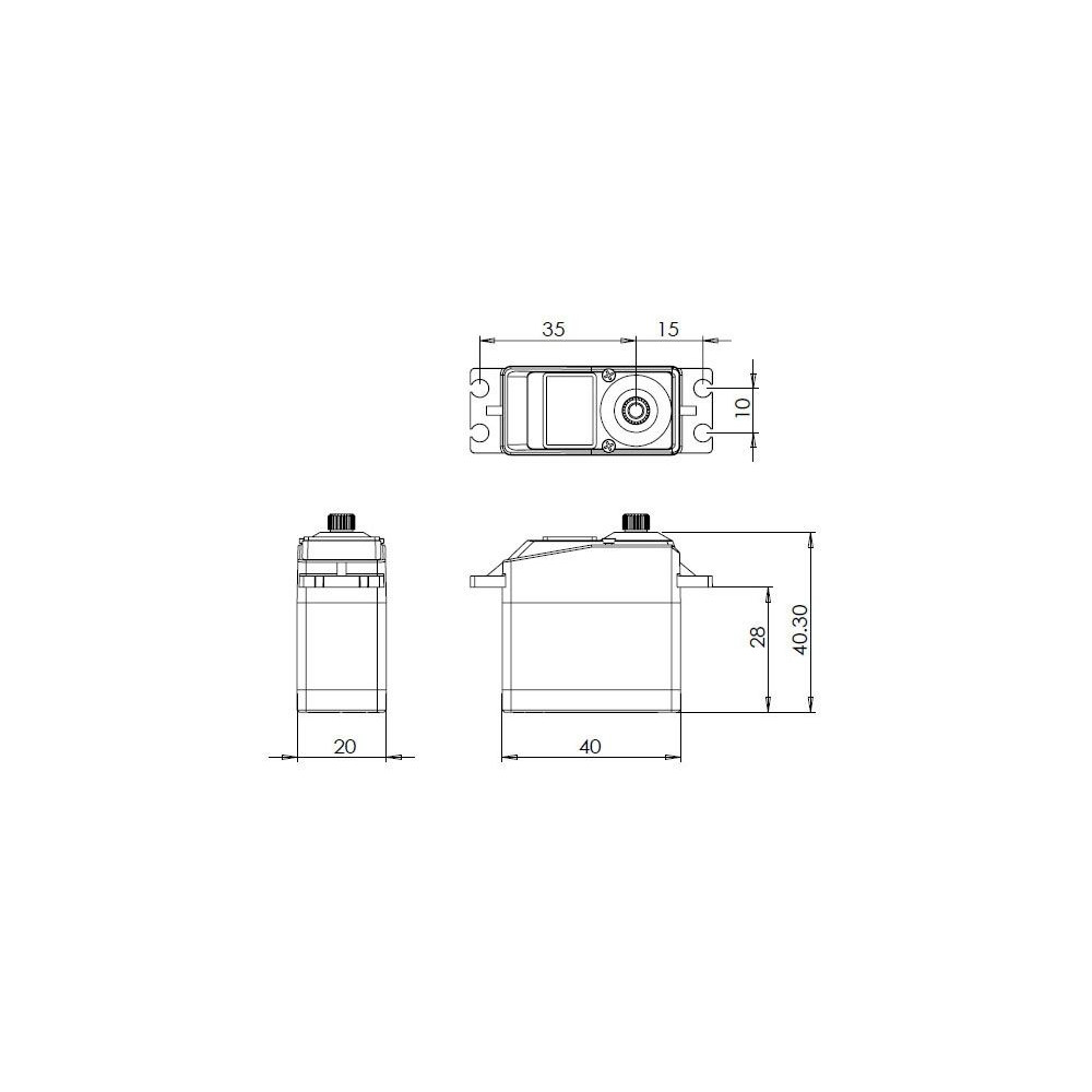 Digitális szabványos szervó fém fogaskerékkel, két golyóscsapágyra szerelt kimeneti tengellyel, általános célú felhasználásra, közönséges repülőgépmodellekhez, de autókhoz és hajókhoz is. A tökéletes hűtés érdekében a szervó nagy terhelés esetén is alumínium középső résszel ellátott dobozban van elhelyezve.