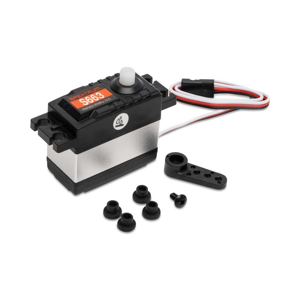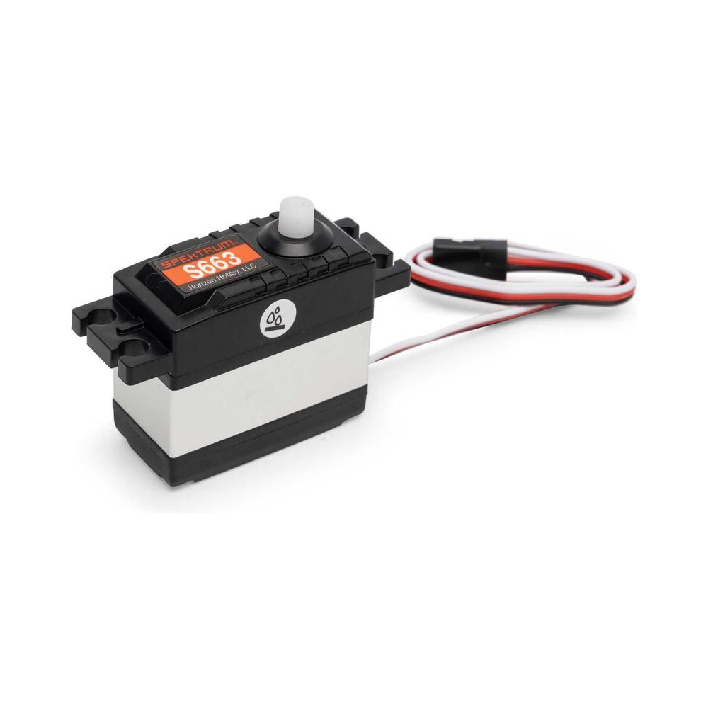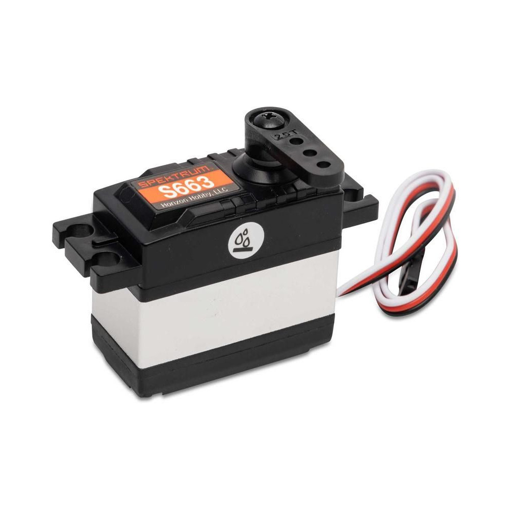 Standard méretű digitális szervó 1:10 RC modellautókhoz, az S663 vízálló, műanyag testű, nyomatéka 5,5 kg.cm @ 6V, sebessége 0,20 s/60° @ 6V. Nylon fogaskerekek, méretei: 40x20x37,5 mm, súlya 39g. 25T milliszekundum