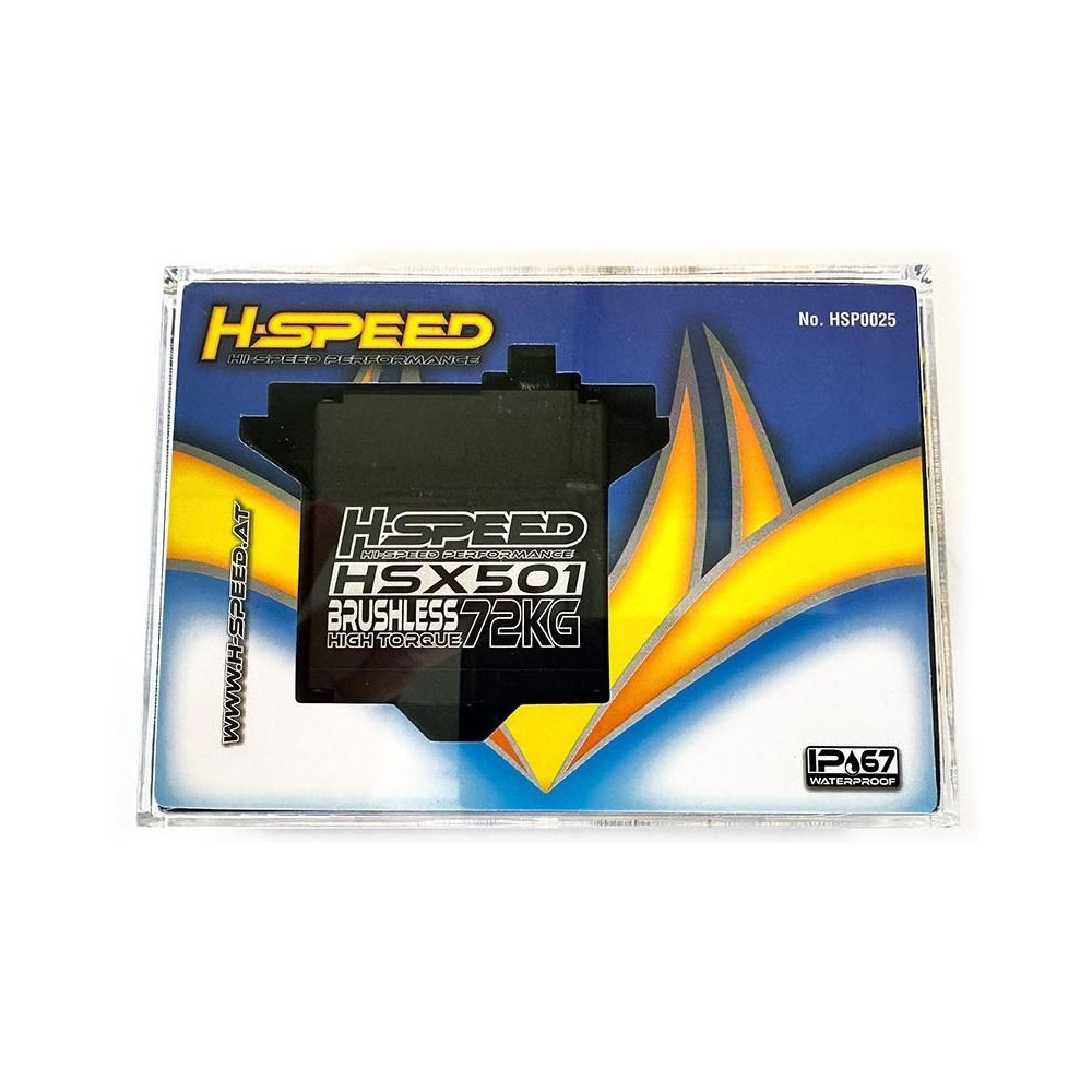 Az extra erős H-Speed HSX501 digitális szervó kefe nélküli motorral 72 kg.cm-es nyomatékával lenyűgöző. Alkalmas 1:5 arányú RC autómodellekhez. A Traxxas 2085 és 2090 szervók helyettesítésére szolgál. A kiváló minőségű CNC alumínium doboz optimális hűtést és nagy tartósságot biztosít.