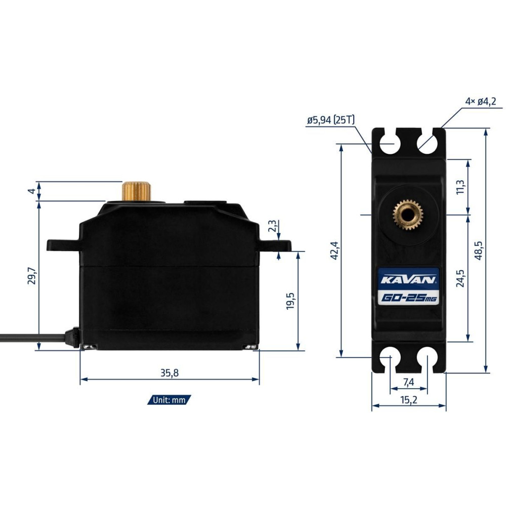 GO-25MG digitális mini szervo (0,065 s/60°, 6 kg cm)