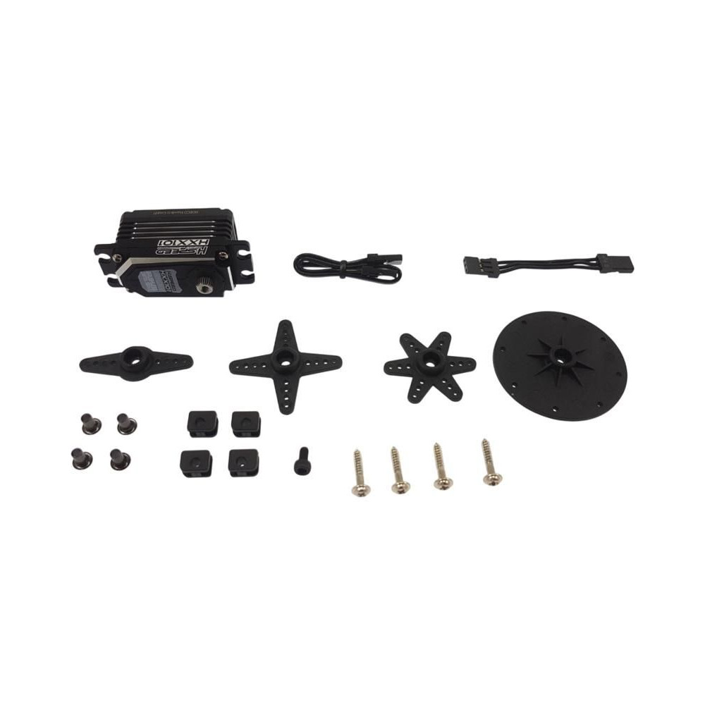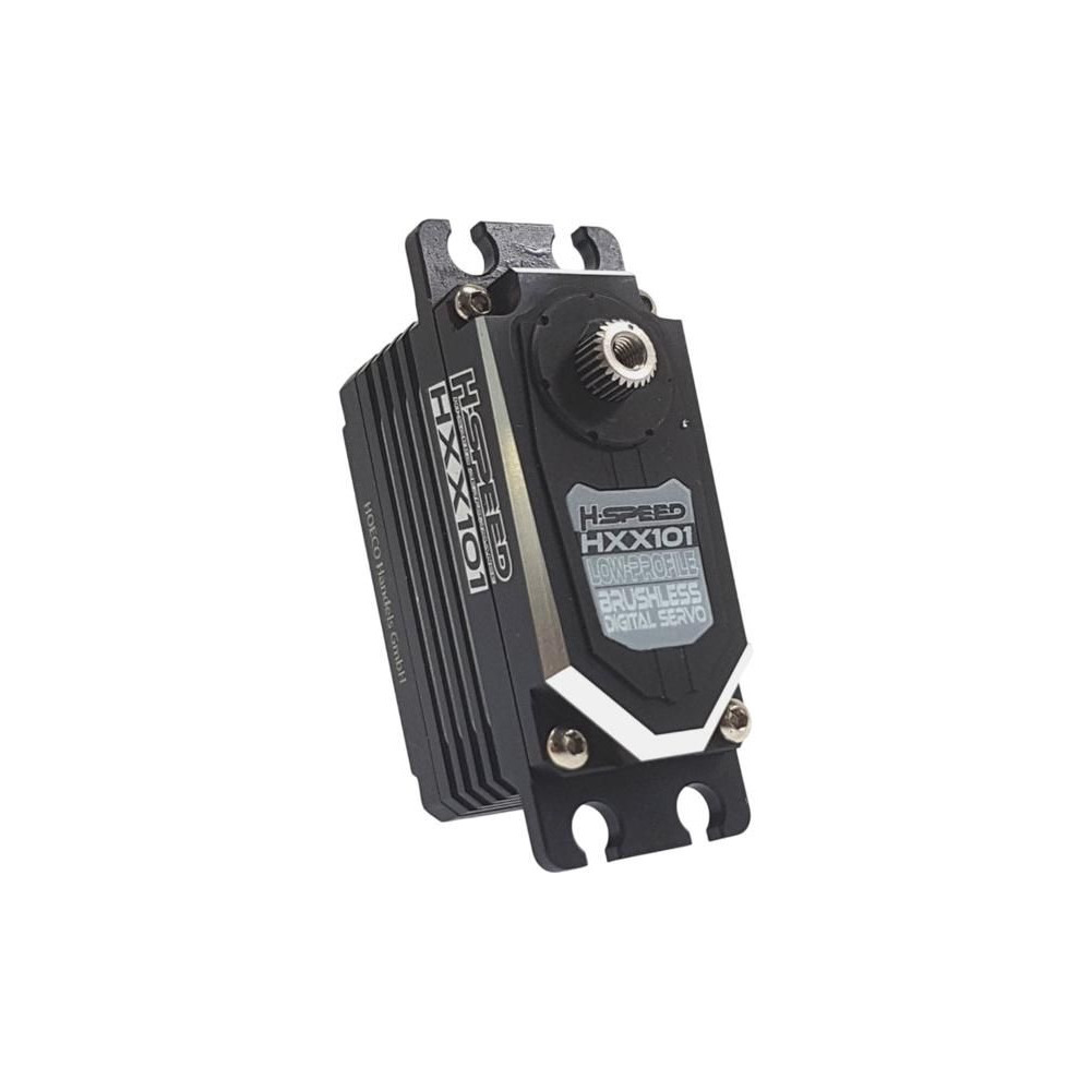 Kiváló minőségű digitális, alacsony profilú szervo H-Speed HXX101 RC autómodellekhez 1:10 áttételben, nyomaték 13-18 kg·cm @ 6-8,4V, sebesség 0,049-0,070s/60°. Fém fogaskerekek, AC motor, áram- és hővédelem, súly 51g, méretek: 42x21x27mm. Méret 25T.
