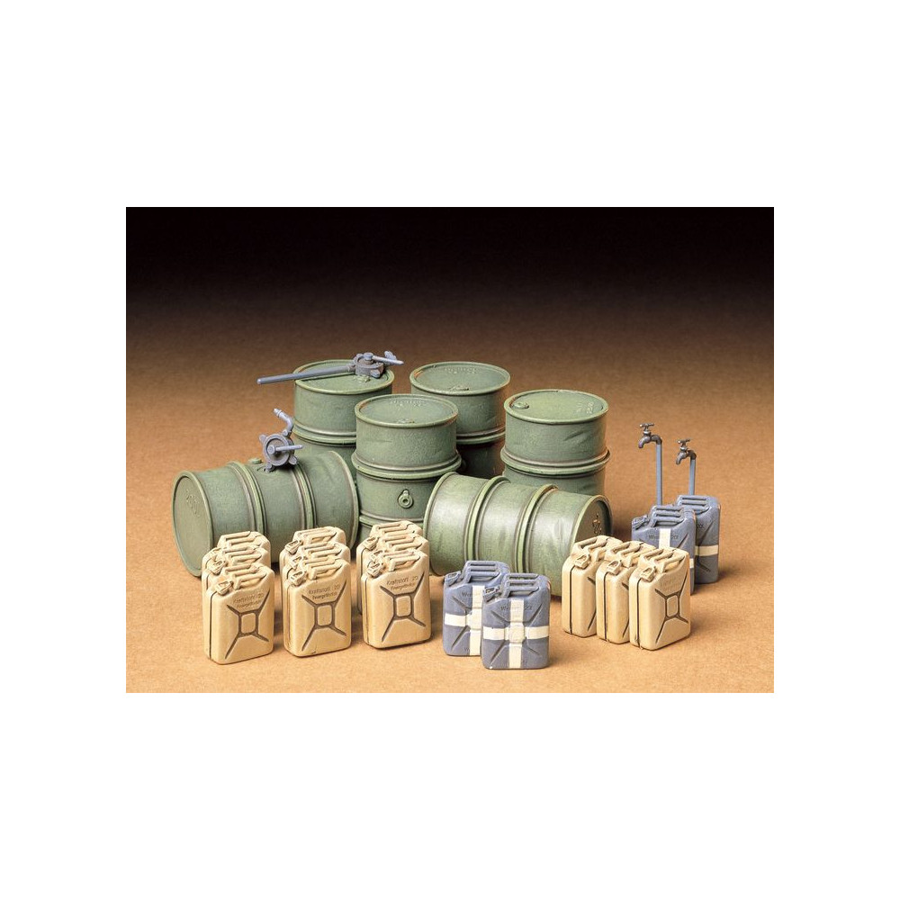 Počas druhej svetovej vojny sa nemecká armáda spoliehala na sudy a kanistre na zásobovanie svojich jednotiek benzínom a pitnou vodou, ktoré sú znázornené na tejto súprave v mierke 1/35.