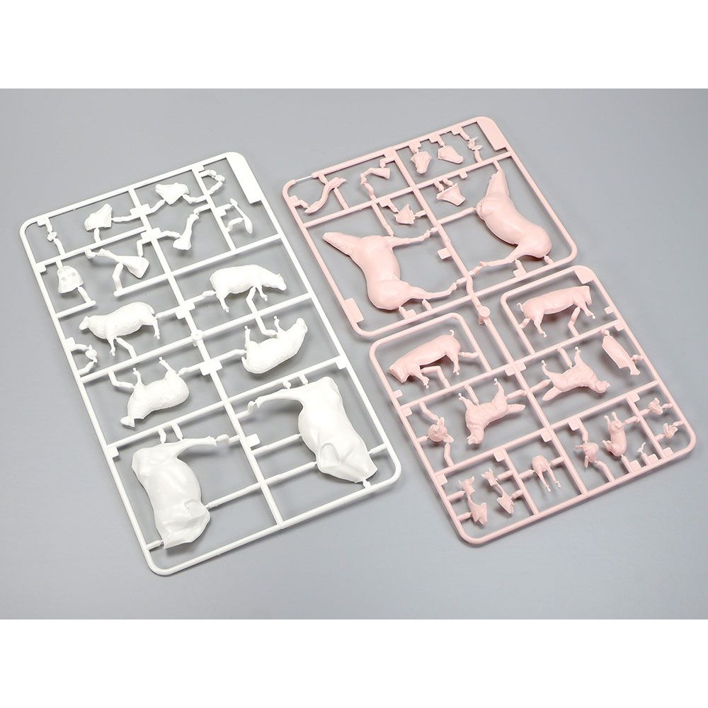 Az alkatrészek rózsaszín (ló, disznó, kutyák) és fehér (tehén, juh) színűek. A könnyű műanyag valósághű színhatást biztosít a színezés után.