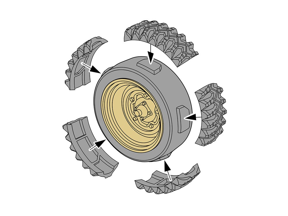A gumiabroncsok 5 részből állnak, ami lehetővé teszi a futófelület mintázatának pontos ábrázolását.