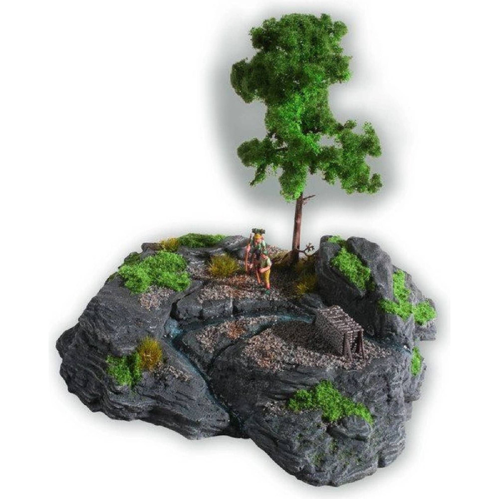 A NOCH 10012 "Sziklás sivatag" modell dioráma valósághű alapot biztosít kézzel festett keményhab hátlappal, amelynek mérete 18 × 15 × 5,5 cm , és amely hiteles sziklás megjelenést kölcsönöz diorámájának. A csomag fákat, bokrokat és egyéb díszítőelemeket is tartalmaz - ideális azonnali használatra!
