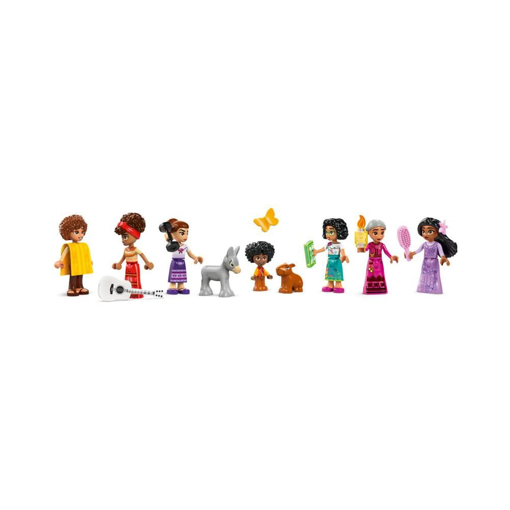 - Disney figurák az Encanto című filmből - 6 LEGO® Disney minifigura: Abuela, Mirabel, Isabela, Dolores, Luisa és Camilo, LEGO® Disney Antonia és 2 LEGO® Disney állatfigura.