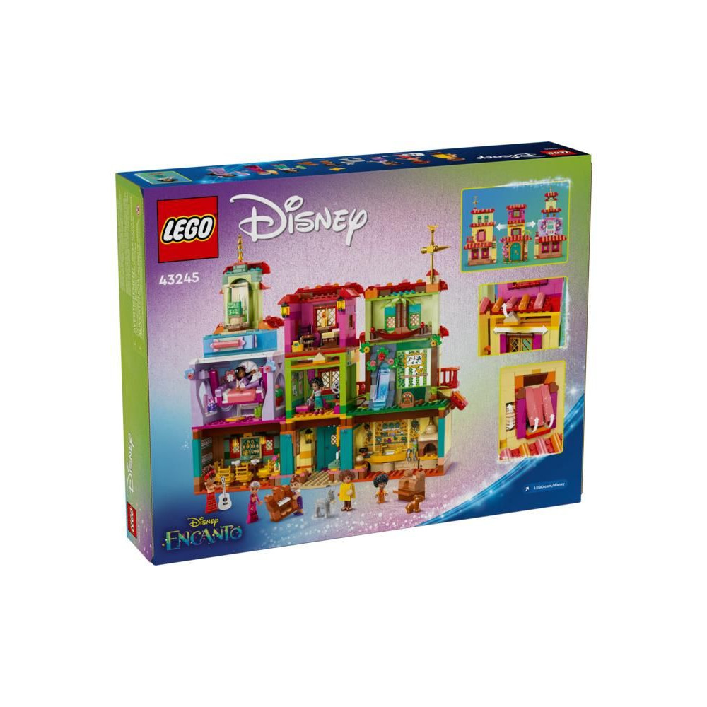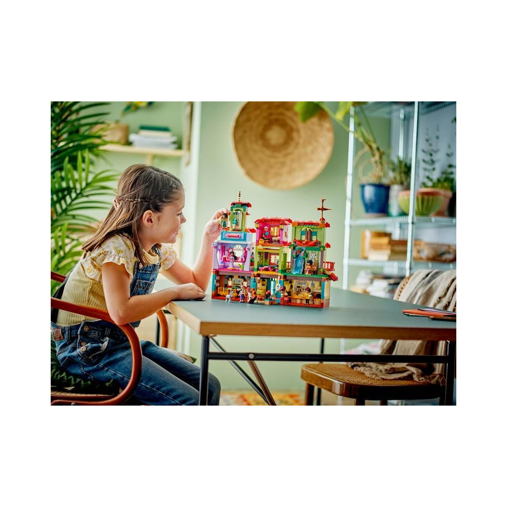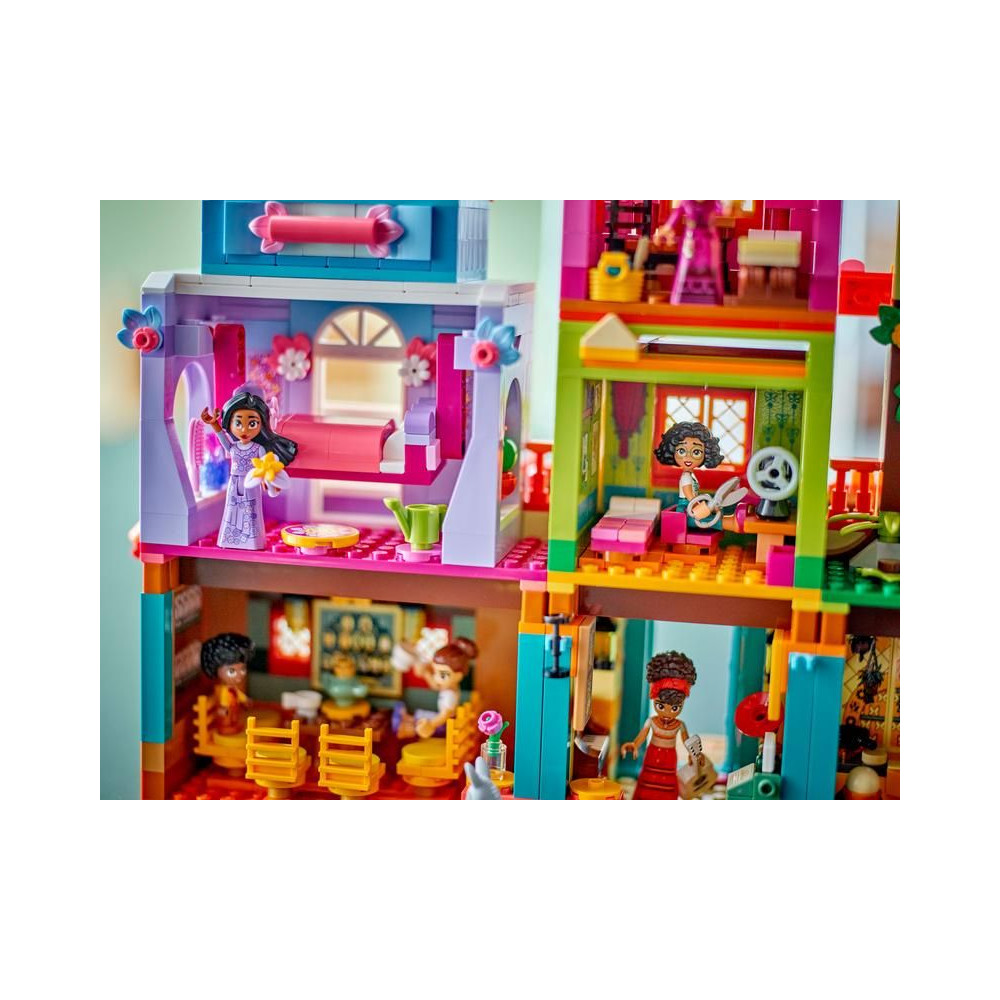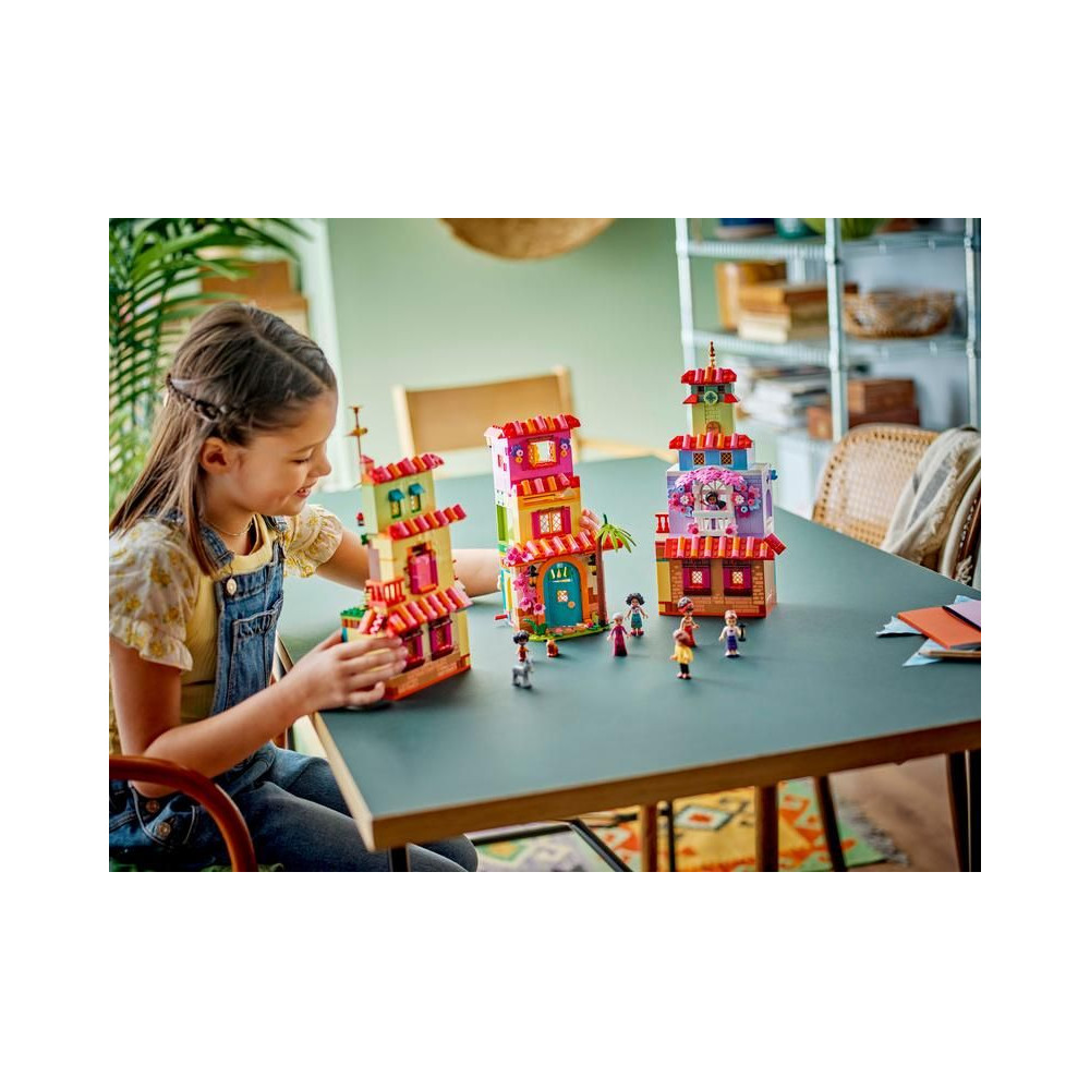 Ez a készlet szórakoztató ajándék, és tartalmazza a LEGO ǀ Disney Mirabel, Abuela, Isabella, Dolores, Luisa és Camila minibabákat, a LEGO ǀ Disney Antonia mikrobabát és 2 LEGO ǀ Disney állatfigurát. A gyerekek és a felnőttek egyaránt imádni fogják a készlet kidolgozott részleteit. A ház kombinálható más gyerekeknek szánt LEGO készletekkel és LEGO ǀ Disney készletekkel (külön megvásárolható) a még nagyobb szórakozás érdekében.