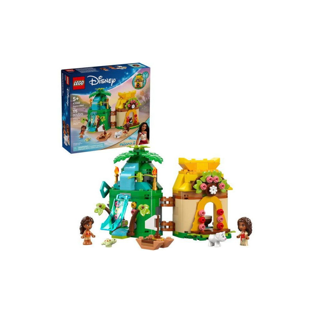 A LEGO® ǀ Disney (43260) Vaiana és a szigeten töltött móka fantasy építőkészlettel a Disney hősnő, Vaiana rajongói 5 éves kortól fantasztikus kalandokra számíthatnak. Ez a megépíthető, kétoldalas mikrovilág modell a Vaiana 2. című film ihlette. A kis építőkészlet egy hatalmas világot rejt magában. A szigeten egy rejtett bejárattal rendelkező vízeséses csúszdát találsz, a házban pedig vannak szobák LEGO ǀ Disney Vaiana mikrobabáknak és kishúgának, Simey-nek, valamint egy hely Puu malacnak. Tartalmaz egy kis csónakot és szemet gyönyörködtető, inspiráló kiegészítőket. A sziget kulccsal zárható, így nagyszerűen alkalmas hordozható játékra útközben.
