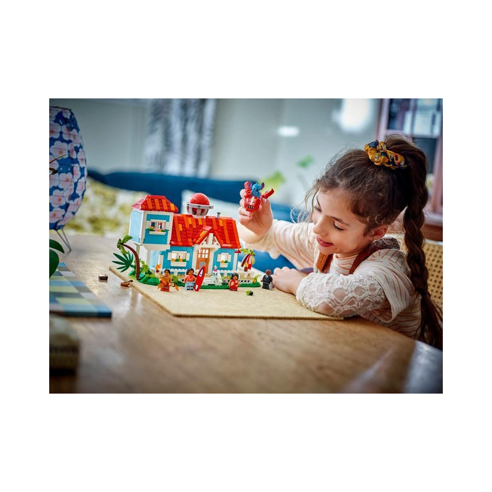 - Építsd meg a készletet – Tartalmaz egy megépíthető 6 szobás házat, egy tetőtéri űrhajó-kilátót és LEGO® ǀ Disney Lilo, Stitch, Nani, David és Mr. Bubbles minifigurákat
