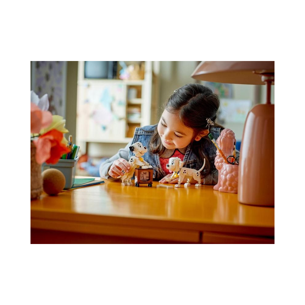 - Dalmaták mindenfelé – Ez a gyerekeknek szánt játékkészlet tartalmazza a klasszikus 101 dalmata film LEGO® ǀ Disney szereplőit, Chipet és Pennyt, valamint egy téglacsontot és egy kis képernyős tévét.