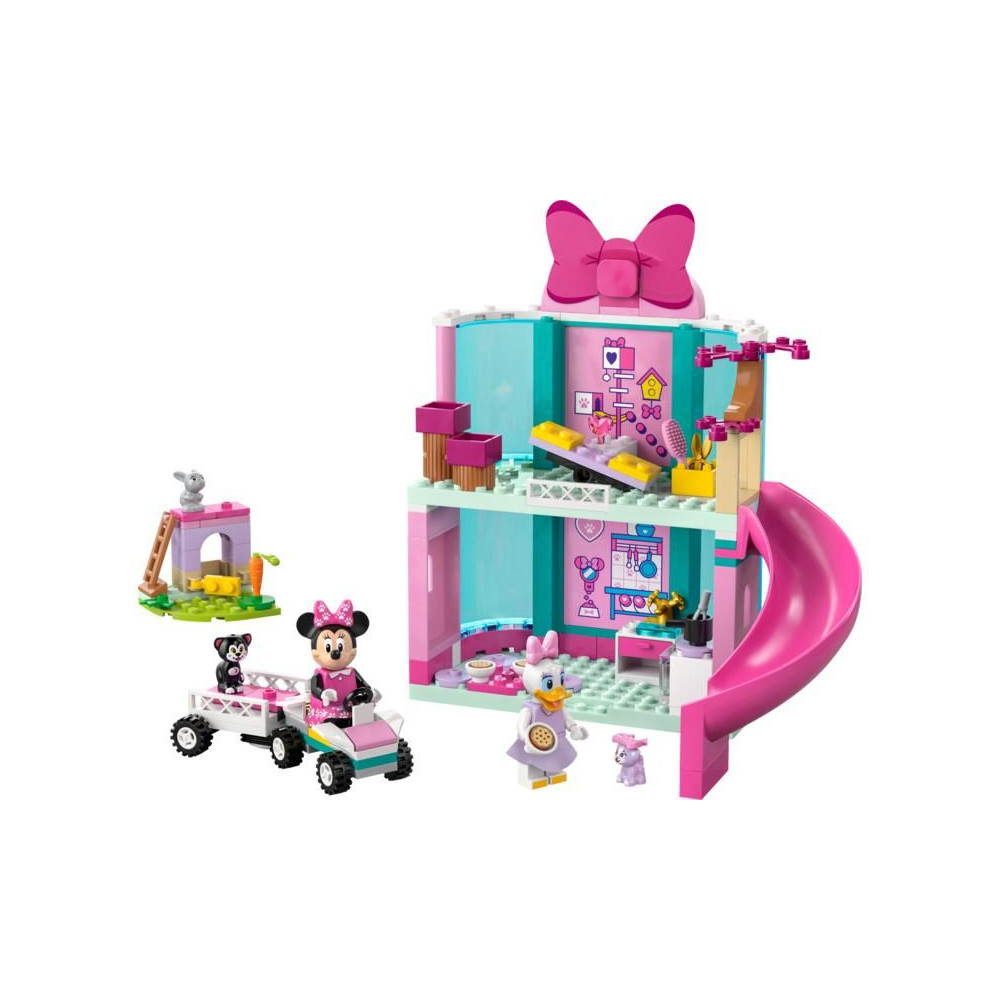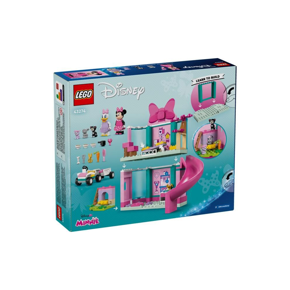 A Mickey egér sorozat Disney rajongói 4 éves kortól játszhatnak és fejleszthetik építési készségeiket a LEGO® ǀ Disney (43274) Minnie és kisállat szállodája építőkészlettel. Az építőkészlet gyönyörű ajándék lesz a gyermekek számára, és tartalmaz egy kétszintes szállodát csúszdával, konyhát és nyúlketrecet, egy autót egy kis utánfutóval és még sok mást. Található benne LEGO minifigurák ǀ Disney Minnie egér és Daisy, valamint LEGO állatfigurák ǀ Disney Figara, Szerelmesek és Nyuszi anyukák.