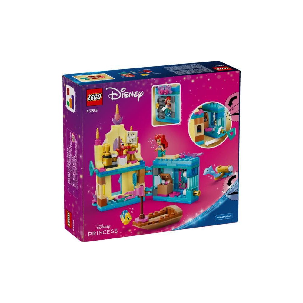 - A DISNEY A KIS HABLEÁNY ÉPÍTŐKÉSZLETE - Ariel és varázslatos miniatűr palotája (43285) tartalmazza a LEGO® ǀ Disney szereplőket: Arielt, Hugrabugot és Sebastiant, egy hajót és egy zárható miniatűr palotát és barlangot.