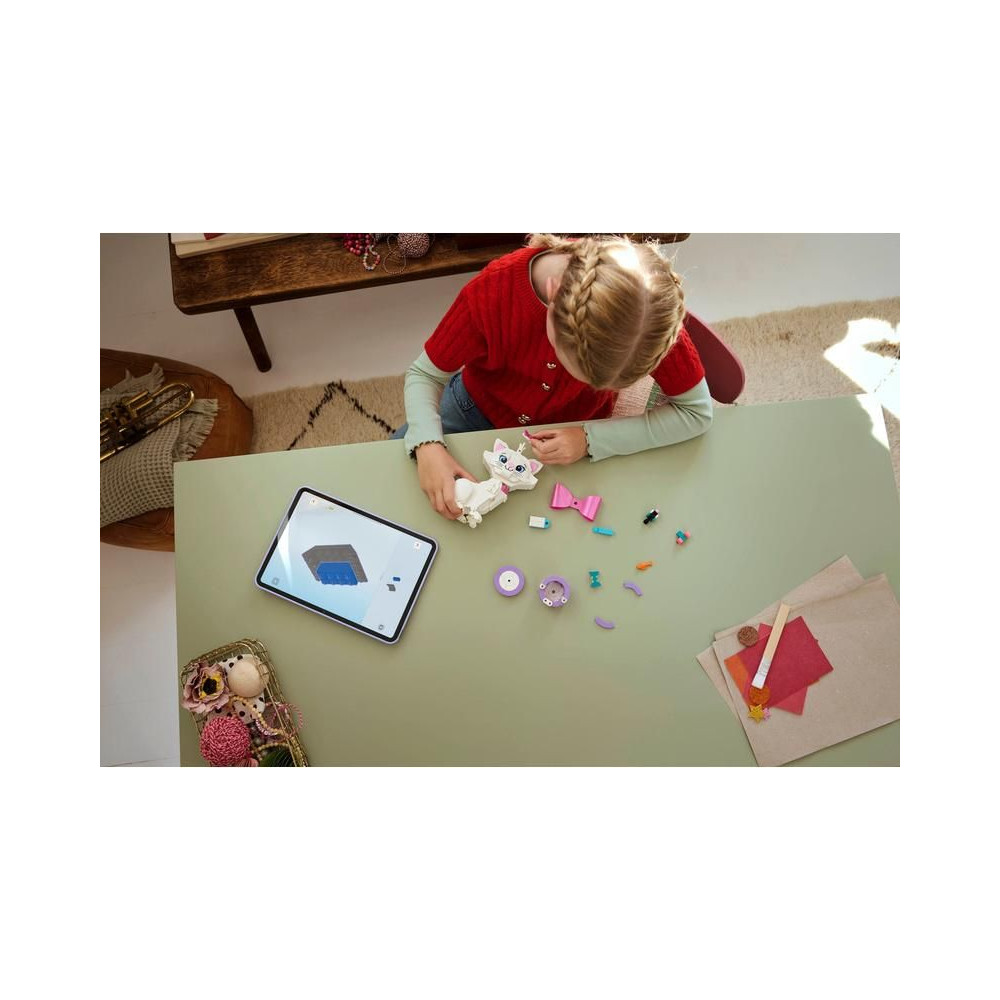 A készlet tartalmaz még megépíthető kiegészítőket ajándékdoboz, egér, ecset, hal és rózsaszín textil masni formájában, amelyek történetmesélésre ösztönöznek. Az építőkészlet nagyszerű születésnapi vagy karácsonyi ajándék lehet állatbarátok számára.