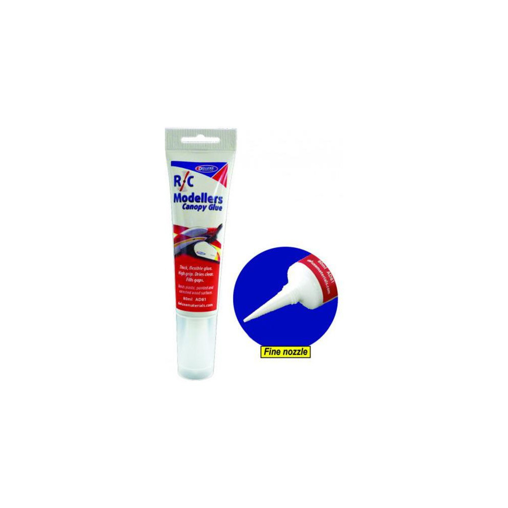 Az RC Modeller a Deluxe Materials cégtől egy többcélú ragasztó, amelyet kifejezetten átlátszó műanyagok ragasztására terveztek - pl. modellkabinokhoz. Emellett műanyagot, fát, fóliát és festett felületeket is ragaszt. A ragasztó sűrű állagú, könnyen felvihető a felületre és nem folyik le. Keményedés után a ragasztó tiszta, rugalmas és vízálló. A ragasztó a szokásos festékekkel színezhető. A száradási idő a réteg vastagságától függően 30-60 perc. A ragasztó vízzel lemosható.