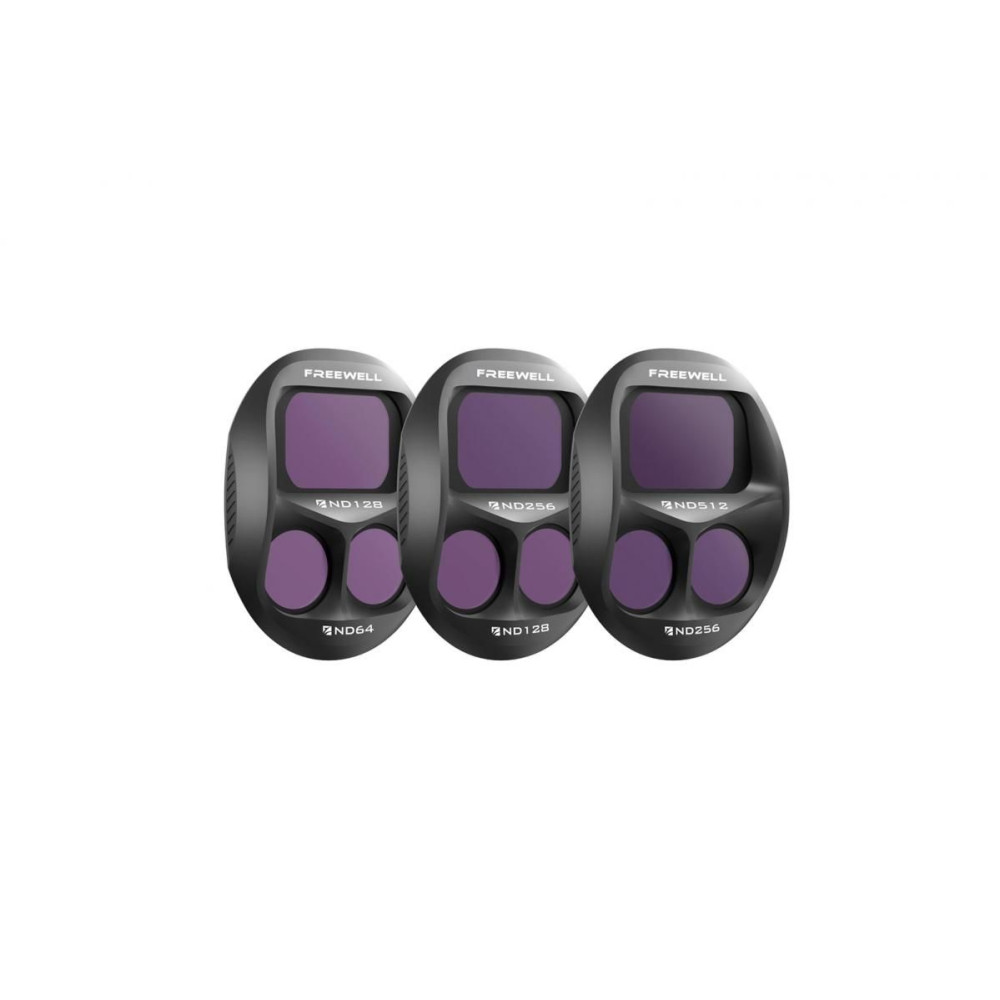 Ez a Freewell ND szűrőkészlet (ND128/64, ND256/128, ND512/256) DJI Mavic 4 Pro drónhoz ideális rendkívül napsütéses napokon történő filmezéshez. Csökkenti az érzékelőre eső fény mennyiségét, sima képet és helyes expozíciót biztosít, minőségromlás nélkül. Tökéletes választás professzionális felvételekhez erős napsütésben.