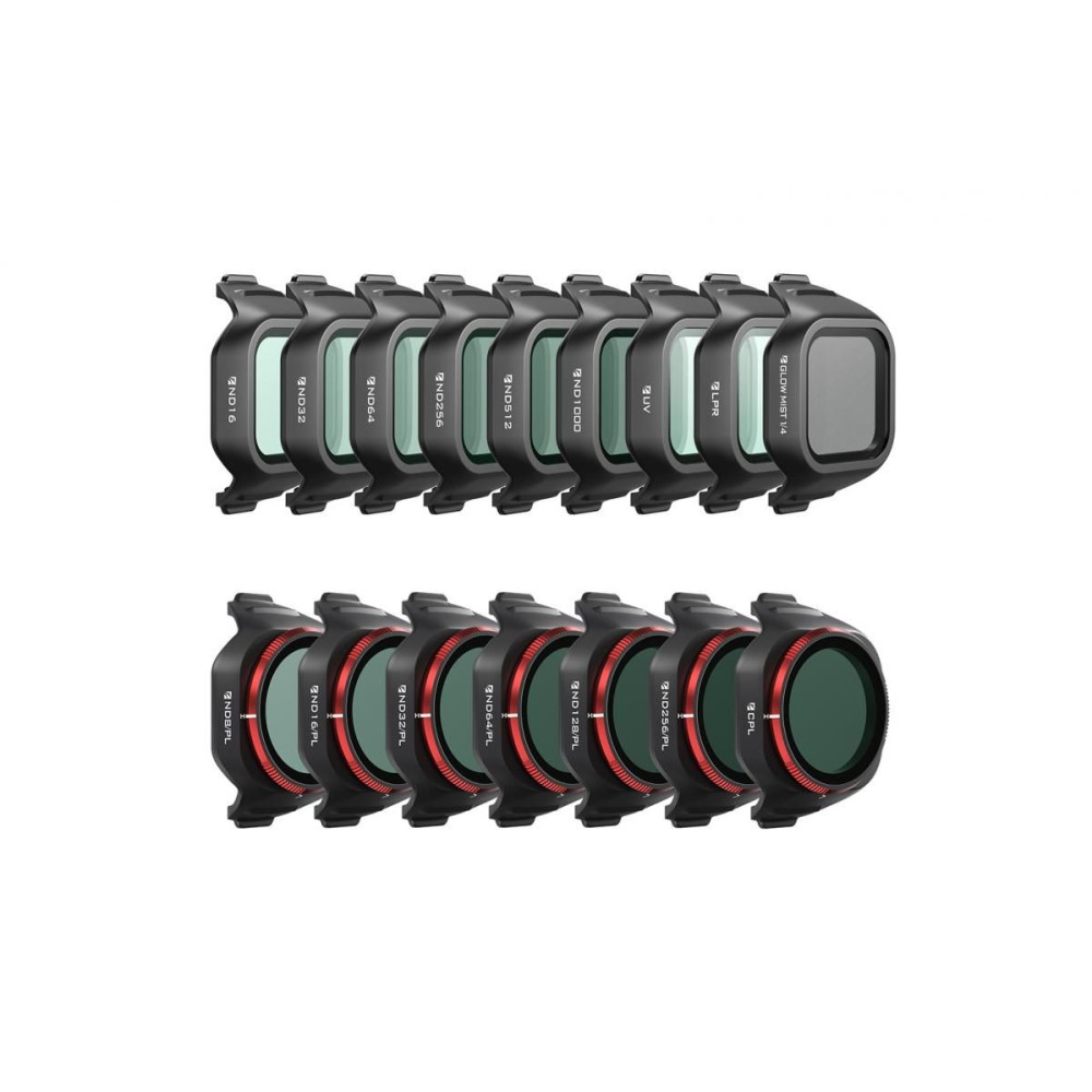 A DJI Mini 5 Pro-hoz készült tizenhat szűrőből álló Freewell készlet tartalmazza az ND8/PL, ND16/PL, ND32/PL, ND64/PL, ND128/PL és ND256/PL szűrőket. Lehetővé teszi az expozíció zökkenőmentes beállítását még erős fényben is, a tükröződések elnyomását és a színtelítettség növelését – ideális professzionális légifelvételekhez nagy fényerejű felvételek készítéséhez.