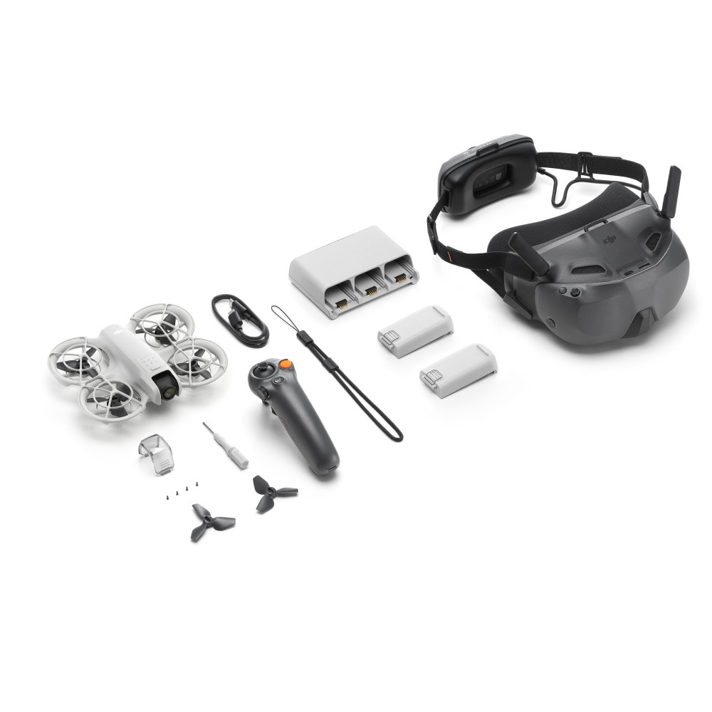 A Neo a DJI által valaha gyártott legkönnyebb és legkompaktabb drón . Könnyen felszedheted a tenyeredből távirányító használata nélkül. A DJI kompakt drónja első osztályú, filmes felvételeket készít rólad vagy a barátaidról a mesterséges intelligencia tárgykövetésének köszönhetően. A DJI Neo drónnal gond nélkül repülhetsz kültéren és beltéren egyaránt, mivel propellerei védőívekkel vannak felszerelve. Részletes és stabilizált 4K videókat készíthetsz , vagy nagy felbontású fotókat. A Motion Fly More Combo szett a standard csomagon kívül tartalmazza a prémium DJI Goggles N3 szemüveget, a DJI RC Motion 3 kontrollert, a DJI RC-N3 RC kábelt (USB-C csatlakozóval), összesen 3 akkumulátort és a DJI Neo kétirányú töltőközpontot.