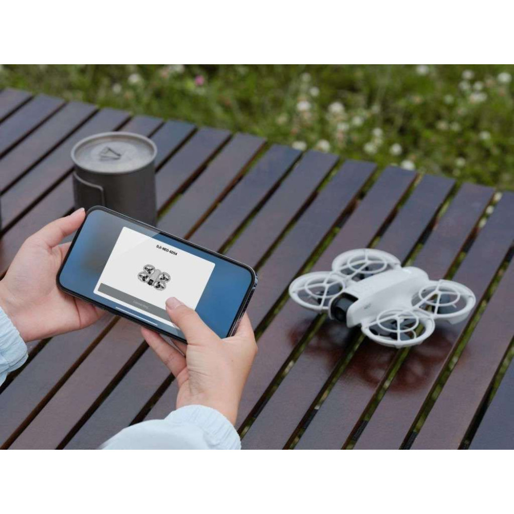 A DJI Neo quadcopter 22 GB belső tárhellyel rendelkezik, amely akár 40 percnyi 4K videót 30 FPS-sel vagy 55 percnyi 1080p videót 60 FPS-sel képes tárolni. A DJI Fly alkalmazáshoz való csatlakozás után külső mikrofonnal rögzíthet hangot, automatikusan kiküszöbölheti a propellerzajt, vagy egyesítheti a külső mikrofon hangsávját a felvétellel. A DJI Neo quadcopter gyors adatátvitelt, QuickTransfer-t kínál , ami azt jelenti, hogy már nem kell kábellel csatlakoztatnod az eszközödhöz, hanem használhatod a WiFi-t. Ezenkívül egyetlen kattintással gyors utómunkát is végezhet az alkalmazásban, például a One-Tap Glamour segítségével. Ezenkívül számos sablon és hangeffektus áll majd rendelkezésre az egyszerű szerkesztéshez.