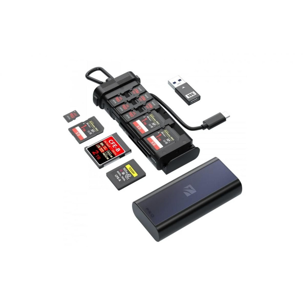 A Freewell Pro Reader - gyors kártyaolvasó egy professzionális alumínium kártyaolvasó CFexpress A/B típusú, SD (UHS-I/II) és microSD kártyákhoz. Akár 10 Gb/s átviteli sebesség az USB 3.2 Gen 2 csatlakozónak köszönhetően. Kompatibilis Windows, macOS, Linux, Android és iOS rendszerekkel. Méretek: 143,7 × 57,8 × 26,2 mm.
