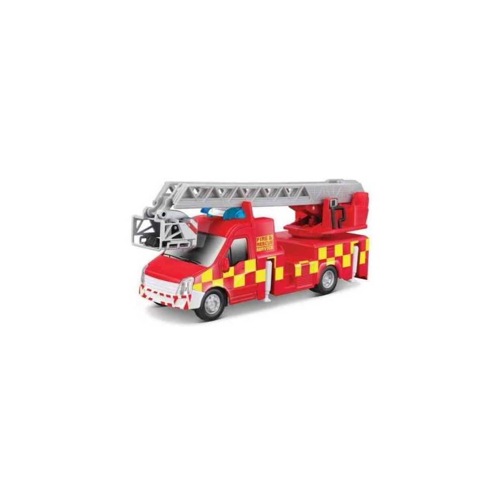 A Bburago 18-32267 munkagép modell - teherautó tűzoltólétrával fém és műanyag alkatrészekből készült. A teherautó mozgatható karral rendelkezik, kihúzható tűzoltólétrával, gumiabroncsokkal, részletes kidolgozással.