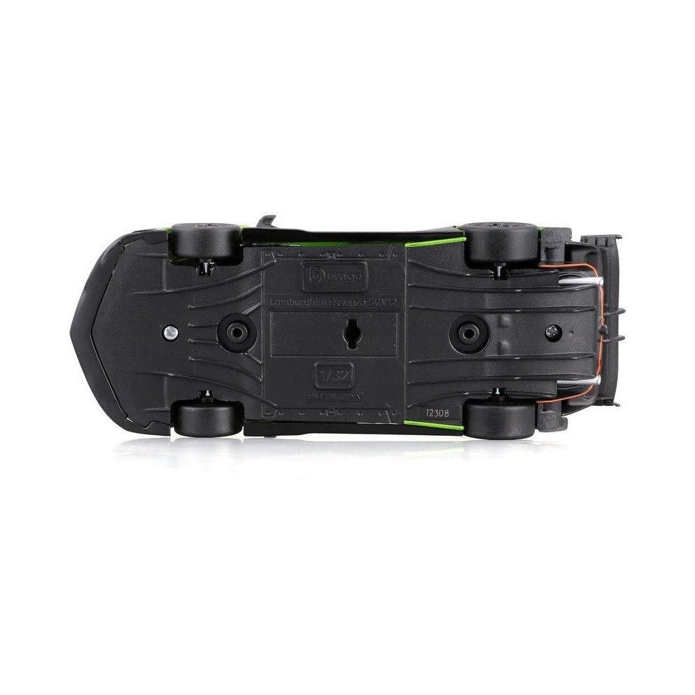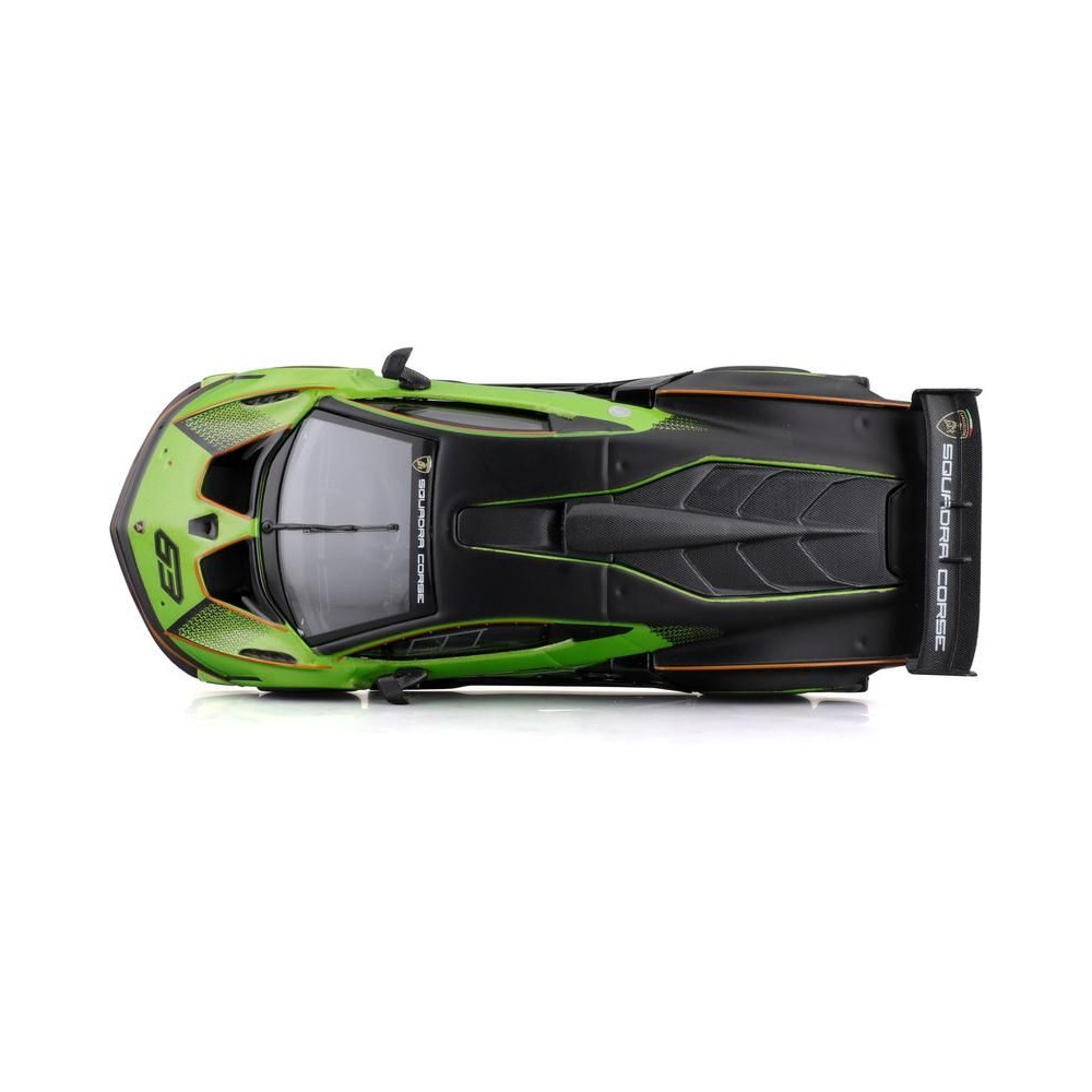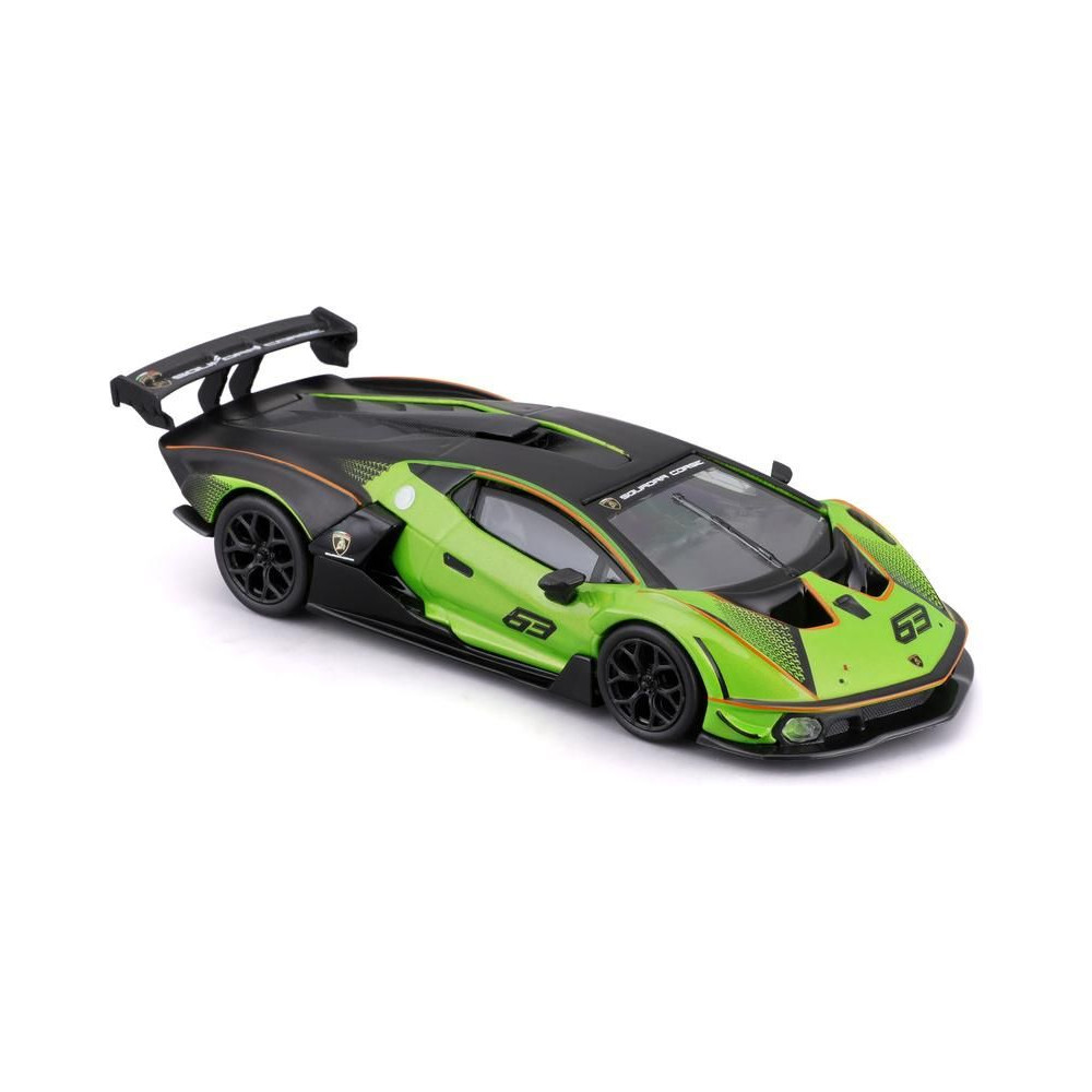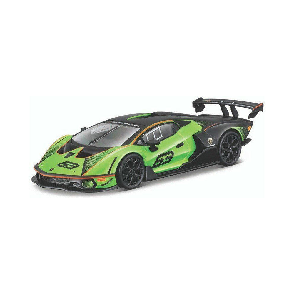Fém autómodell 1:32 Bburago 18-41161 Lamborghini Essenza SCV12 nem csak gyűjtőknek. A modell kb. 13 cm-es, fekete és zöld színű, versenyszámmal van ellátva. A modell részletesen kidolgozott, nagyszerű kivitelezés.