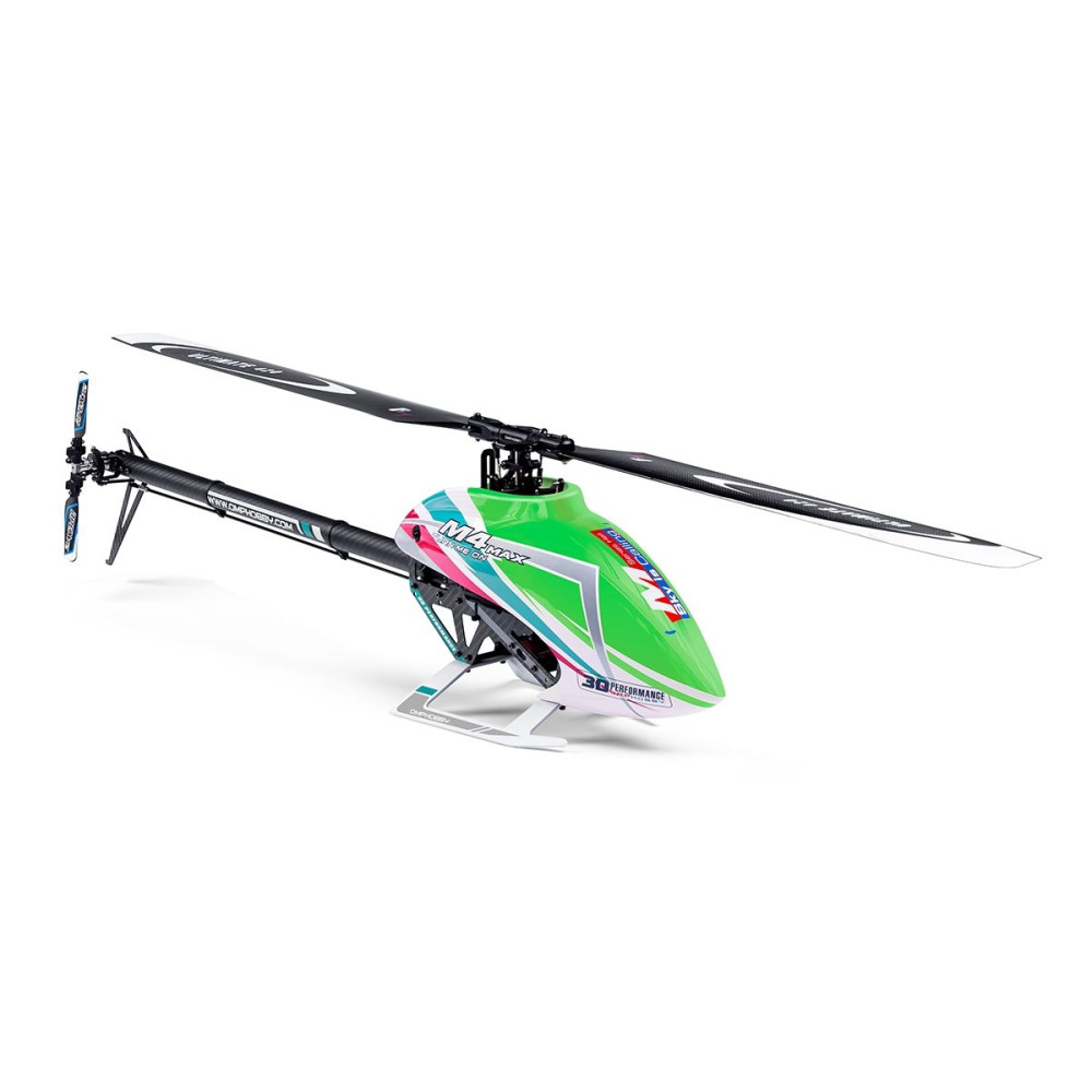 A népszerű M4 "380" osztályú 3D helikopter mostantól egy új, szupererős M4 MAX változatban is megvásárolható. A MAX, akárcsak az "eM-Four", 120°-os CCPM ciklikus tányérral rendelkezik, flybar nélküli "fenék nélküli" rotorfejjel. Egy új, nagyobb teljesítményű, kefe nélküli motor közvetlenül hajtja a 945 mm átmérőjű hordozórotort; a meghosszabbított karbon farokgerendán lévő kompenzációs rotor meghajtása egy szélesebb fogazott szíjon keresztül történik, ami megbízhatóan továbbítja a teljes teljesítményt. A modellhez felszerelheti kedvenc flybarless vezérlőjét, egy 6S LiPo 2200 mAh akkumulátort és természetesen egy megbízható RC készletet, míg a modellhez 4 digitális szervó és egy 85A governor funkciójú vezérlő tartozik.