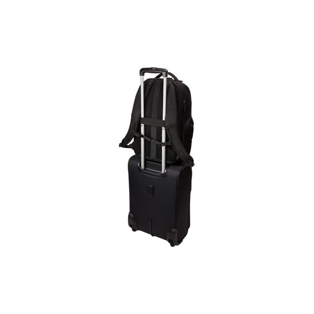 A világos belső párnázás növeli a láthatóságot és megkönnyíti a tartalomhoz való hozzáférést. Áthajtható heveder a teleszkópos utazási csomagfogantyúhoz való rögzítéshez. A cipzáras oldalzsebek bővíthetőek, hogy elférjen bennük egy vizes palack, vagy biztonságos tárolóként szolgáljanak egy hálózati adapter számára. Az állítható szegycsonti heveder stabilizálja a csomagot nagyobb terhelés esetén.