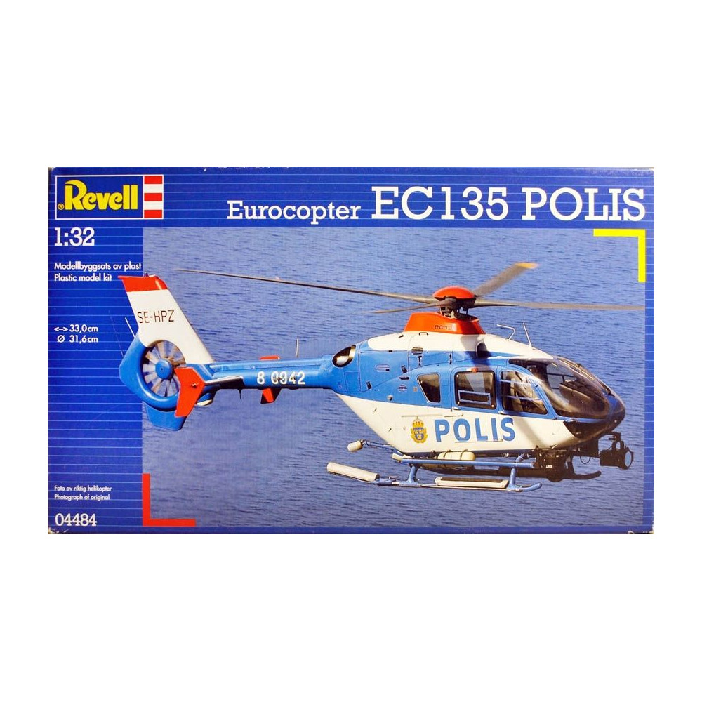 Ez a ritka műanyag Revell modell az Eurocopter EC135 helikopter "POLIS" poli-változatát ábrázolja. A készlet 1:32 méretarányú.