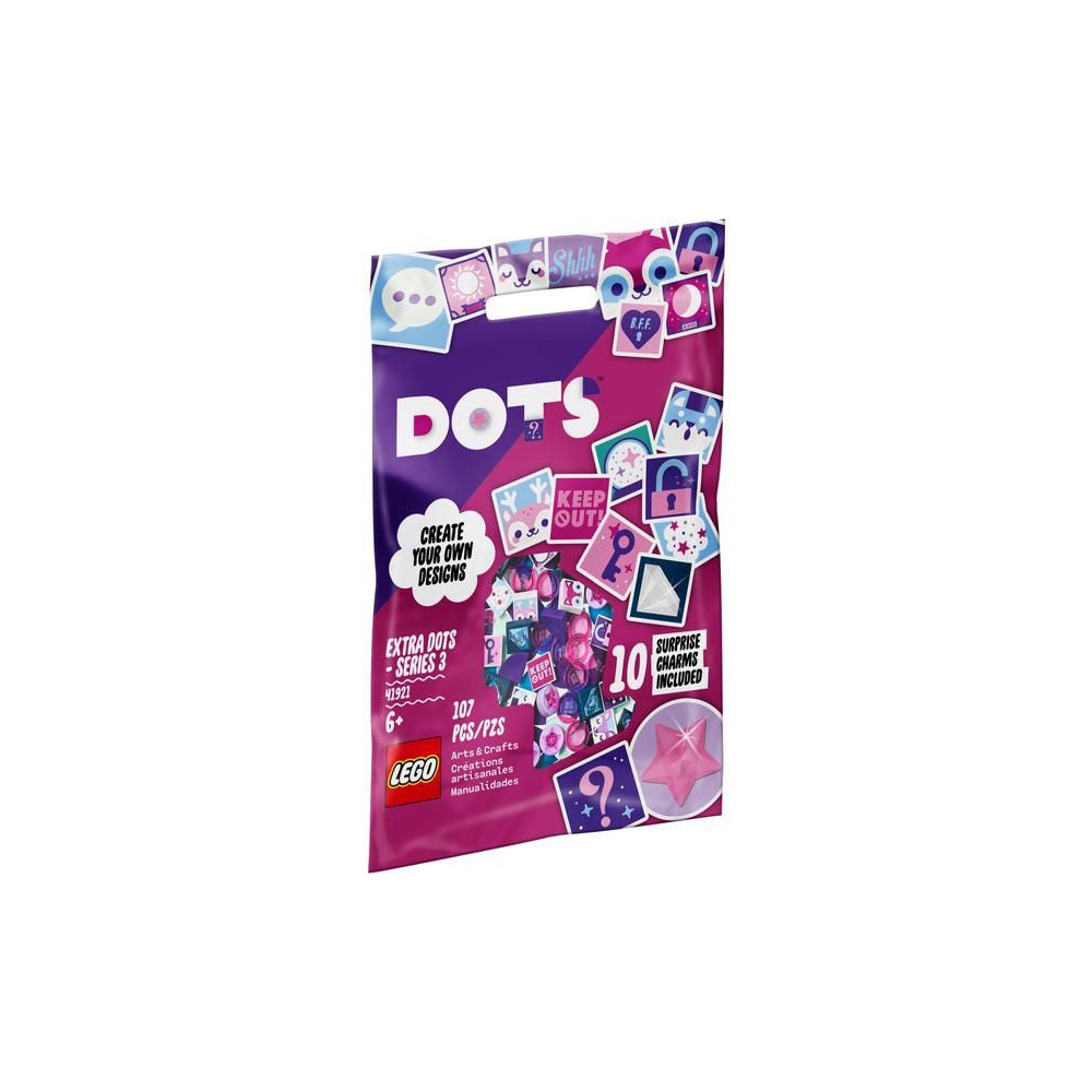 - A 3. sorozat DOTS kiegészítőit tartalmazó zsák (41921) kinyitása minden kreatív lelket boldoggá tesz. Az új színek és a különleges díszítők mindig jól jöhetnek. Ugyanakkor remek ajándék 6 éves kortól lányoknak és fiúknak.