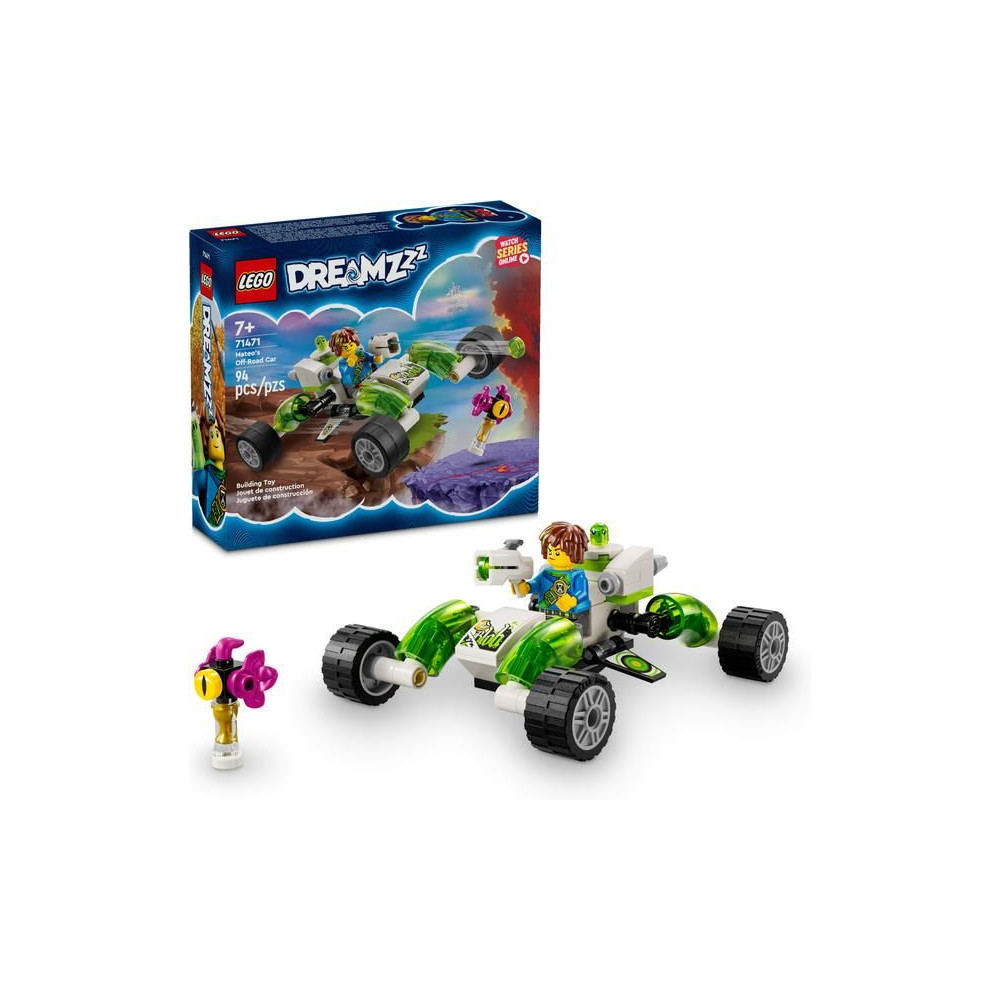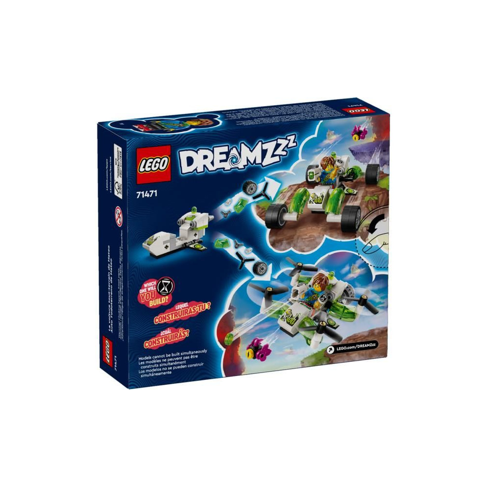 A gyerekek saját fantáziájuk szerint kalandozhatnak, és választhatnak a buggy mód, amely egy robusztus terepjáró, és a quadcopter mód, amely egy kompakt repülőgép szupererős hátsó motorokkal. A készletet LEGO DREAMZzz figurák keltik életre, köztük Mateo kidolgozott minifigurája a kilövővel. Vannak még Dagobert és Máté nyálkás segítőjének, Z-Fleknek a figurái is, akikkel a gyerekek saját álomkalandjaikra indulnak.