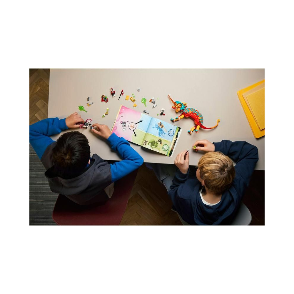 - Építhető játék – A kaméleon mozgatható szájjal, fejjel, farokkal, szemekkel és lábakkal rendelkezik, és tüzes kaméleon őrként építhető lézerfegyverrel és kilövőkkel, vagy sugárhajtású repülőgépként mini robottal.