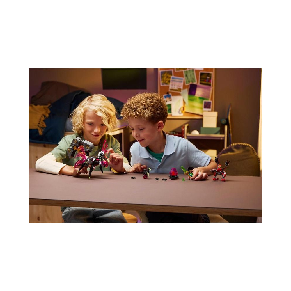 A készlet Mateo, Cooper és Arika minifigurákat is tartalmaz, amelyek kreatív játékra inspirálnak, ráadásul Mateo egy gyűjthető zöld karddal is rendelkezik. Van benne egy Z-Flek figura, 3 pók és egy rózsaszín gyémánttojás is, amelyet a Rémálom Császár pusztított el, és amelyből egy gyűjthető narancssárga kincslény kel ki.