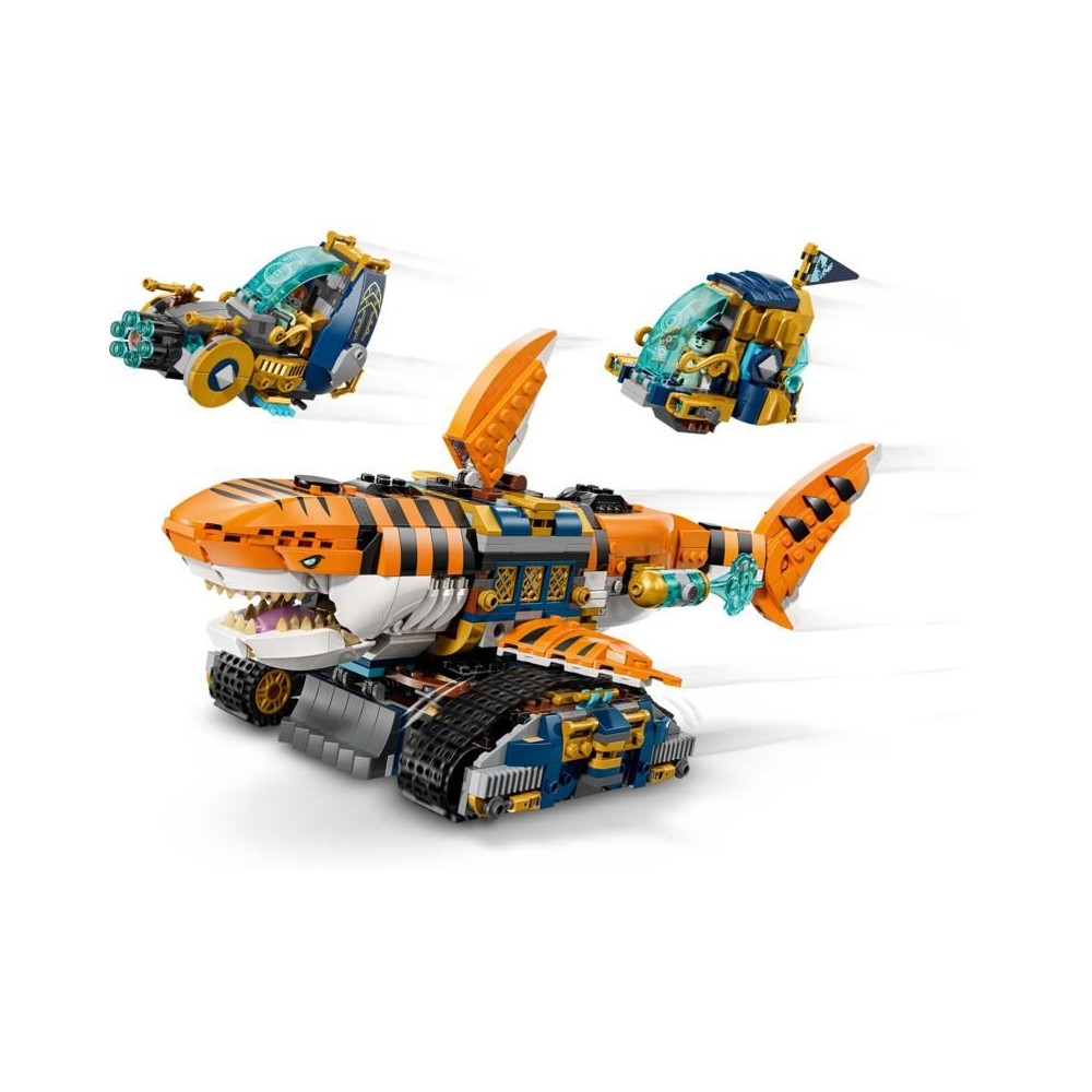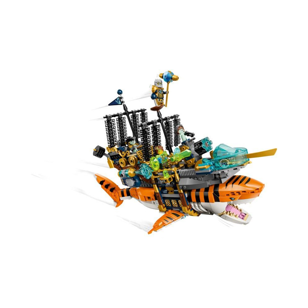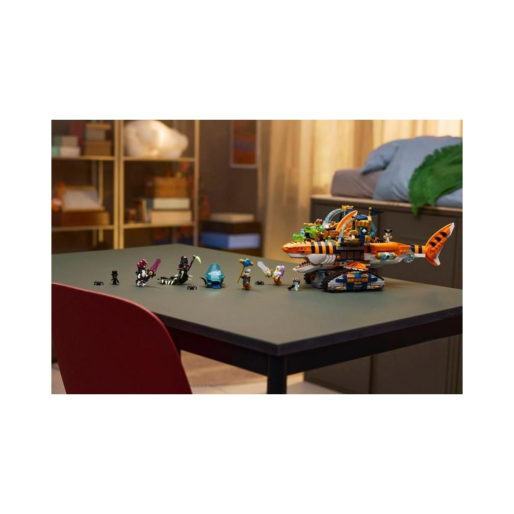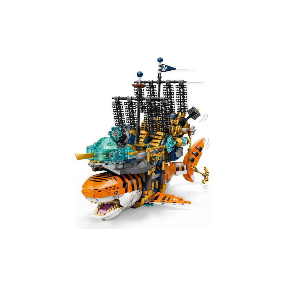 A tigriscápa hajó elülső ágyúval, oldalsó kilövőkkel, nyitható szájjal, hátul kincstárolóval és kiegészítőként egy horgonnyal rendelkezik. Mateo, Izzie, Mr. Oz, a Rémálmok császára és Arika minifigurái fantáziagazdag játékot indítanak el, és gyűjthető kardok egészítik ki őket. Van még egy gyémánttojás, egy zöld-fehér kincslény, egy Z-Flek, egy vigyor, 2 álmodozó figura és 3 pók is.