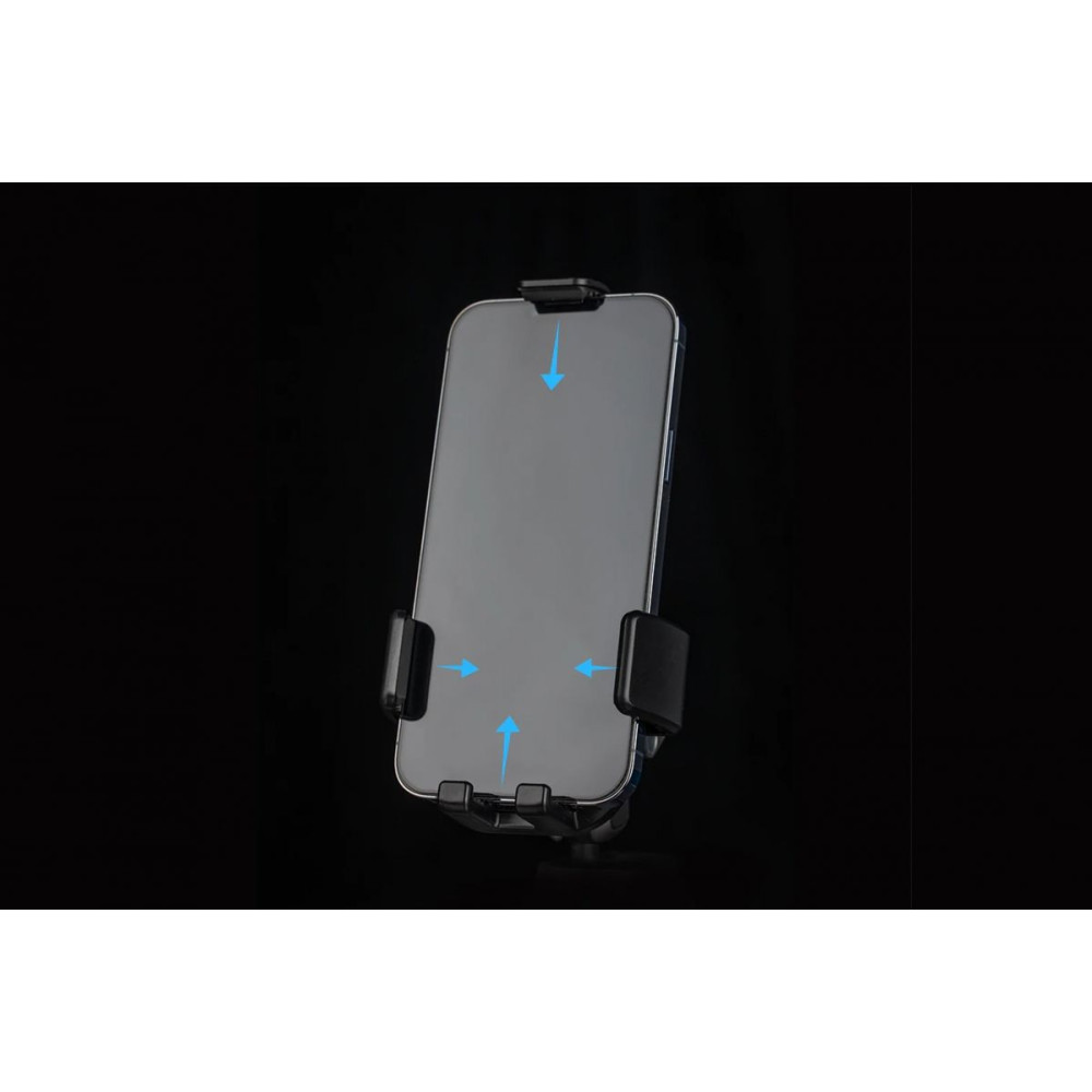 A csúszásgátló gumi biztosítja az ütésvédelmet. 3. Gyorszár és gyorskioldó kialakítás. (Kompatibilis a legtöbb okostelefonnal) Súlykapacitás: ≤ 300g