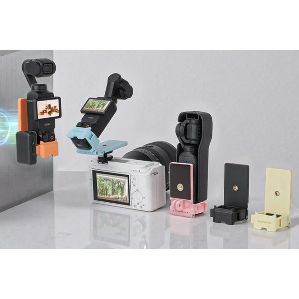 A DJI OSMO Pocket 3 színes, mágneses, összecsukható tartója műanyagból, mágnesből és szilikonból készült, ami szilárdságot és rugalmasságot biztosít. Súlya 58 g, méretei pedig 46 x 48 x 83 mm. Van rajta egy furat egy 1/4"-os csavarhoz, és egy vakupapucs is a többi tartozék egyszerű csatlakoztatásához. Ez a praktikus tartó lehetővé teszi a kamera gyors és kényelmes rögzítését, így ideális kreatív filmezéshez és rugalmas használathoz.Více informací