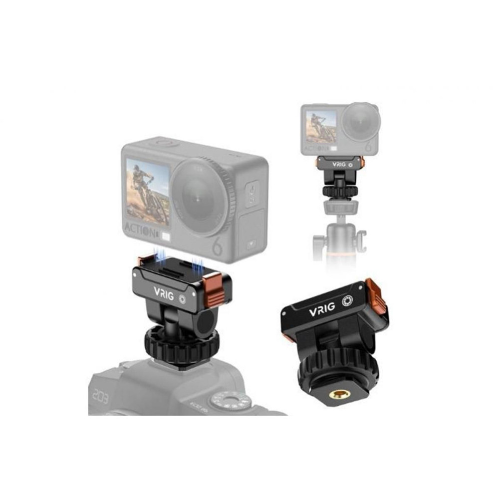 Az állítható VRIG mágneses tartó DJI Osmo Nano és Action 6 kamerákhoz készült, és rugalmas, biztonságos kamerarögzítést kínál. Az erős mágnes stabil csatlakozást biztosít, míg az állítható kialakítás lehetővé teszi a rögzítési szög egyszerű beállítását. A tartó hidegpapucs-csatlakozóval és 1/4"-os menettel van felszerelve, hogy széleskörűen kompatibilis legyen a tartozékokkal. Az ABS és az alumíniumötvözet tartós kombinációja hosszú élettartamot garantál még igényes használat esetén is.