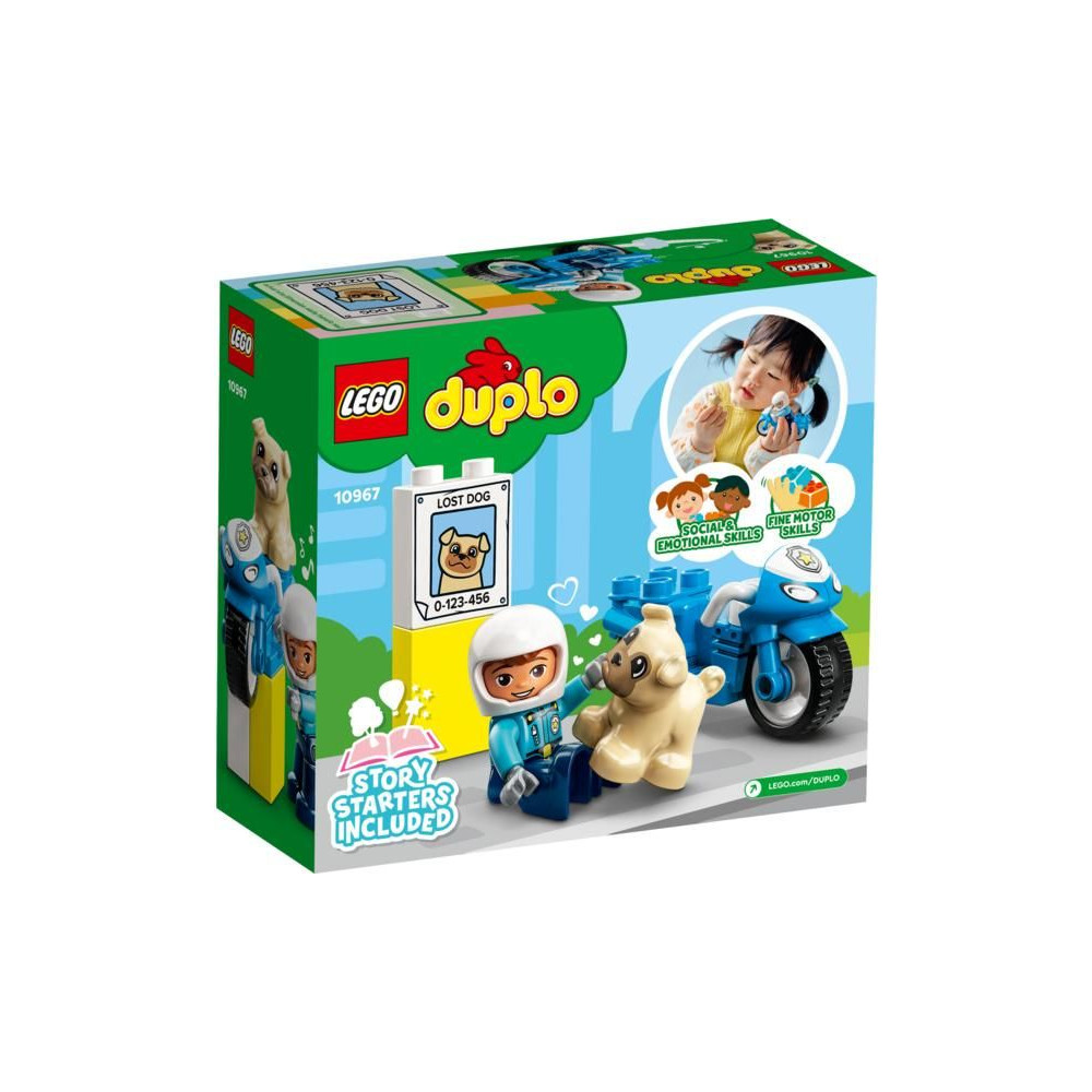 A kreatív LEGO® DUPLO® Police Motorbike (10967) készlet játékos formában segíti a fontos készségek fejlesztését, és minden olyan óvodásnak örömet szerez 2 éves kortól, akit érdekel a rendőri munka, a menő motorok és szeret vigyázni az állatokra.
