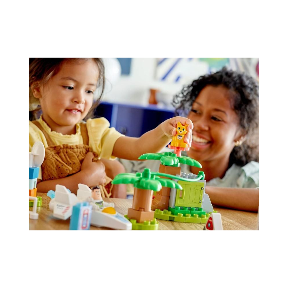 - Egy bolygó, ahol akcióban nincs hiány - a készlet tartalmaz egy LEGO® DUPLO® Buzz Lightyear figurát, Soxot, a robotmacskát, Ivánt, a számítógépet, Ericet, a háromszög alakú droidot, egy űrhajót, fantasztikus helyszíneket és szórakoztató kiegészítőket.