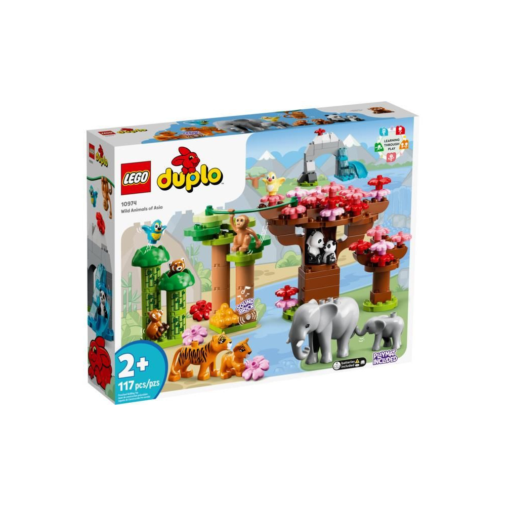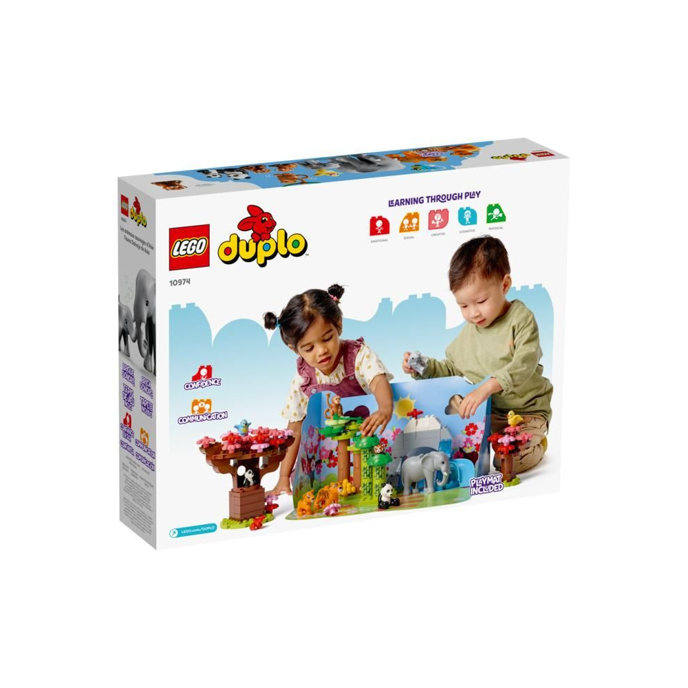 - Fedezd fel Ázsia vadonját - A LEGO® DUPLO® Vadállatok Ázsiában (10974) készlet ázsiai élőhelyek kidolgozott modelljeit tartalmazza, helyi állatokkal, növényekkel, fákkal és valósághű hangokkal.