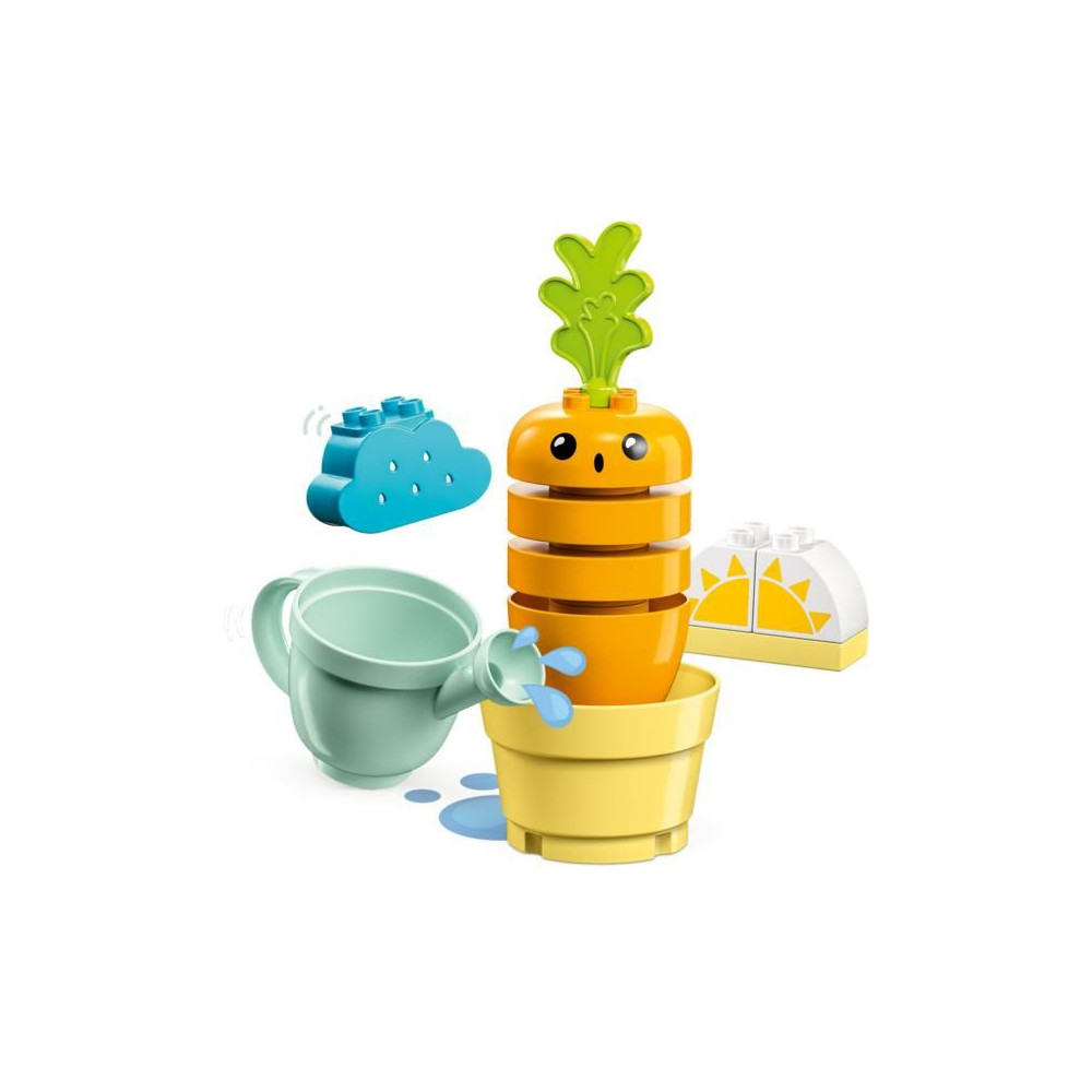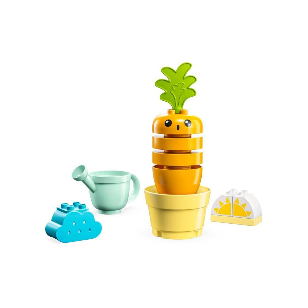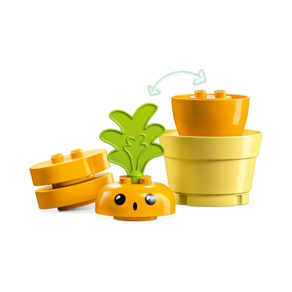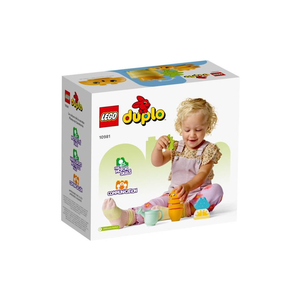 A LEGO® DUPLO® My First Carrot Builder 18 hónapos kortól tanítja a gyerekeket a fenntartható életmódra és a növénytermesztésre. A játékkal való játék a motoros készségeket is fejleszti.