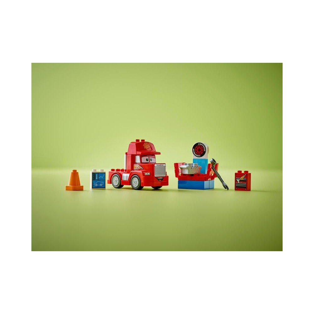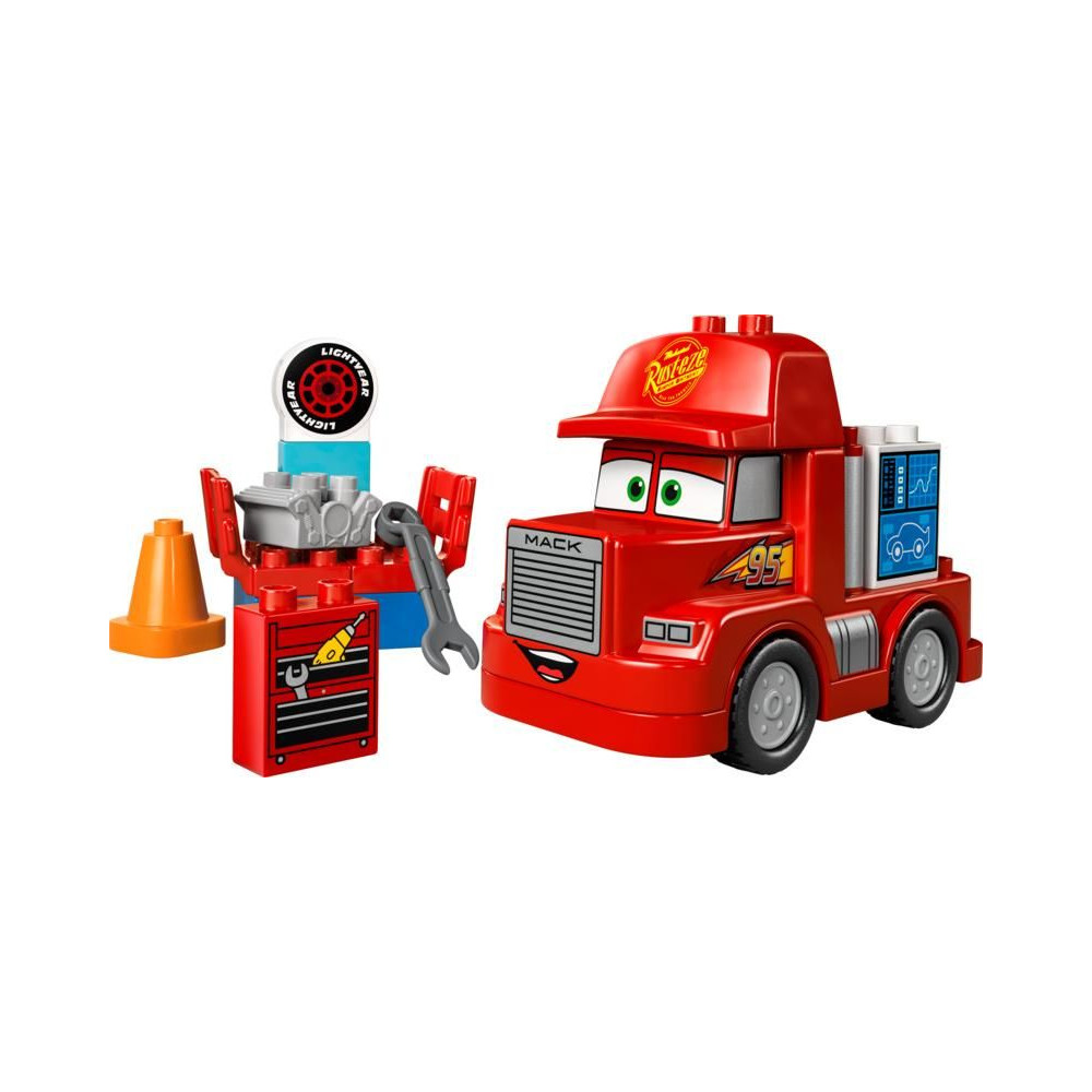 - LEGO® DUPLO® Transporter kreatív kiegészítőkkel - Tartalmazza a Disney és Pixar filmek Verdák című filmjéből ismert Mack megépíthető guruló modelljét, egy téglákból készült tuningállomást, egy motortéglát és egy kúpot.