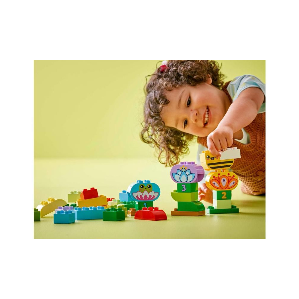 - 3 LEGO® DUPLO® állatfigura – Ez a természet témájú játék kisgyermekeknek 3 figurát tartalmaz: egy békát, egy pillangót és egy méhet.