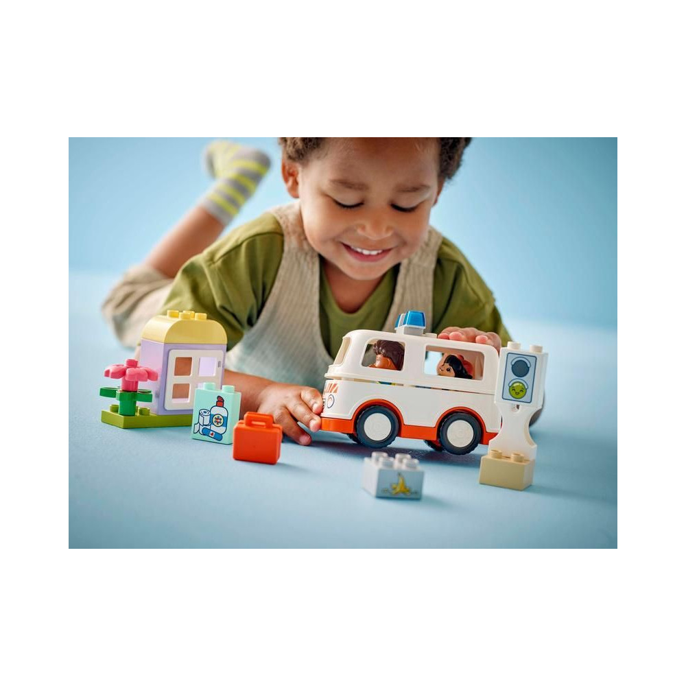 Ez a kreatív LEGO DUPLO játék nagyszerű ajándék a kisgyermekek számára, akik szeretik a szociális és érzelmi készségeket fejlesztő játékokat, és segítenek az empátia kialakulásában. Az építési útmutató része egy nyomtatott játékkerék, amellyel a szülők és a gyerekek felfedezhetik a kislány karakter különböző érzelmeit. Segítségével a gyerekek kifejezhetik érzéseiket, amikor valaki rosszul érzi magát, vagy azt, hogy mit éreztek, amikor először láttak mentőautót. A készlet segít fejleszteni a logikus gondolkodást eseménysorozatok összeállításakor, valamint a finommotoros készségeket a mentőautó tetejének kinyitásakor, amelyen keresztül a figurát az összecsukható ágyra lehet helyezni. Ez az oktatójáték segít a kisgyermekeknek szociális készségeik fejlesztésében is, amikor eldöntik, hogyan kezeljen egy mentős egy beteget.