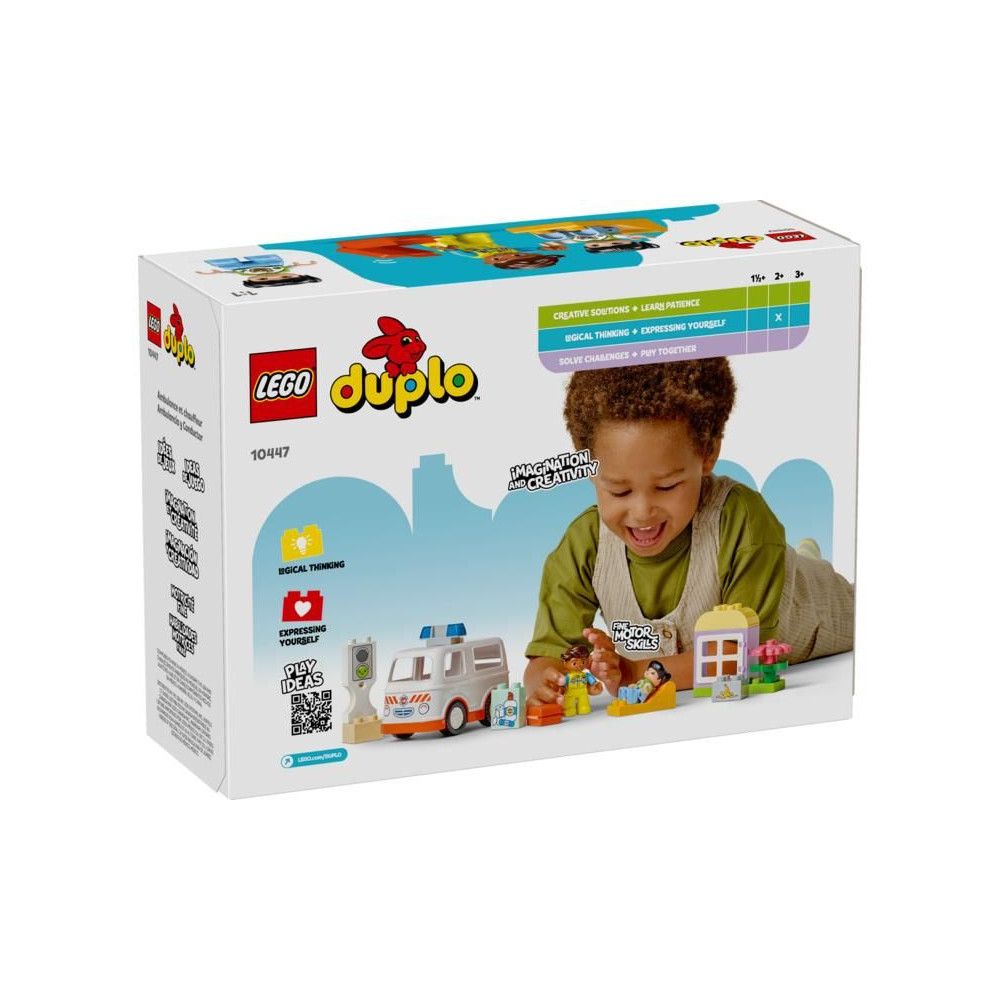 A gondoskodó gyerekek élvezni fogják az izgalmas mentési jeleneteket a Mentőautó és sofőr (10447) játékkészlettel. Tartalmaz egy mobil mentőautót és 2 LEGO® DUPLO® figurát, egy mentőt és egy lányt, amelyekkel a gyerekek kreatív karakterjátékban vehetnek részt.